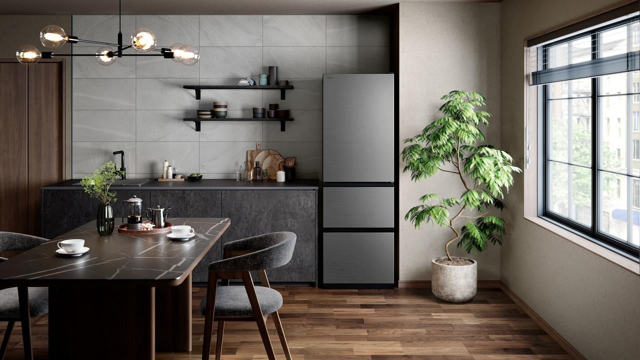 スリムな本体幅※で、インテリアになじみやすいシンプルでフラットなデザインを採用。ヘアライン調の鋼板ドアで、高い質感を表現しています。色は、「まんなか冷凍 HWSタイプ」がライトゴールドとピュアホワイトの2色を、また、「まんなか野菜 Vタイプ」は今回新たにグラファイトシルバーを採用し、ライトゴールドとあわせて2色を展開。