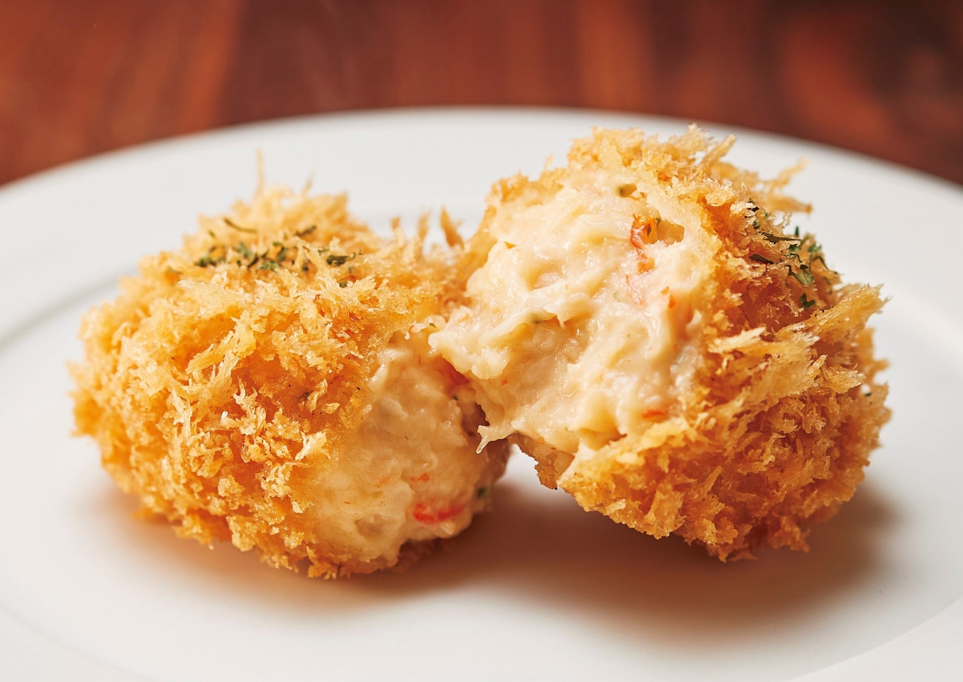 紅ずわい蟹ならではの風味を最大限に活かしました。口どけよく、コク深いベシャメルソースに広がる濃厚な蟹の旨み。別添のソースをあえてなくし、紅ずわい蟹の圧倒的なおいしさを堪能できるコロッケです。