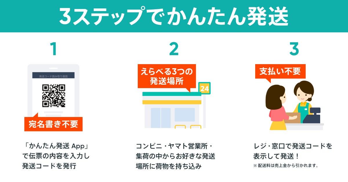 「かんたん発送(ヤマト運輸連携) App」は、「BASE」をご利用のネットショップを対象に提供する拡張機能「BASE Apps」(https://apps.thebase.com )のひとつで、QRコードを用いることで配送伝票の宛名書きが不要でかんたんに商品を発送することができる機能です。匿名配送にも対応しており、1商品につき手数料50円(税込)で配送ラベルの送り主の欄に個人情報を記載することなく商品を発送することも可能です。