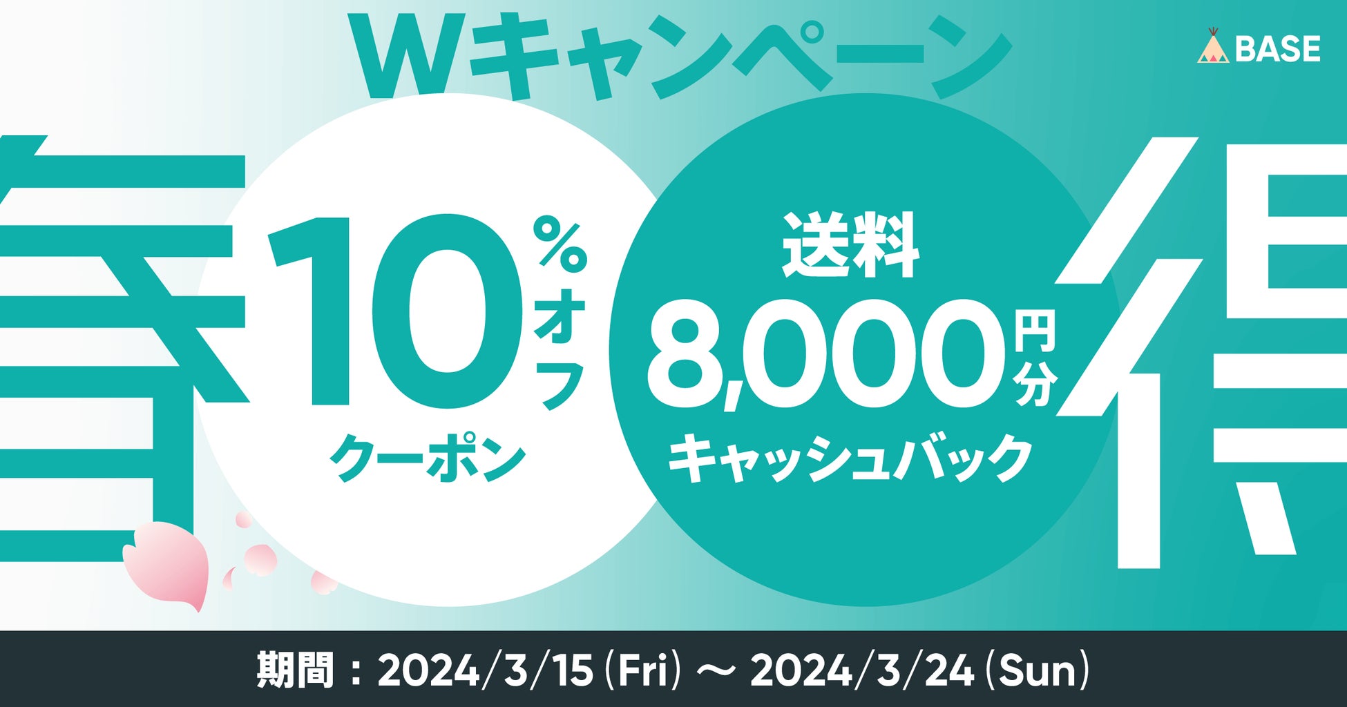 「BASE」がショップさま向けの「春得Wキャンペーン」を3月15日(金)21時より開始 「かんたん発送 App」を利用すると送料最大8,000円キャッシュバック!