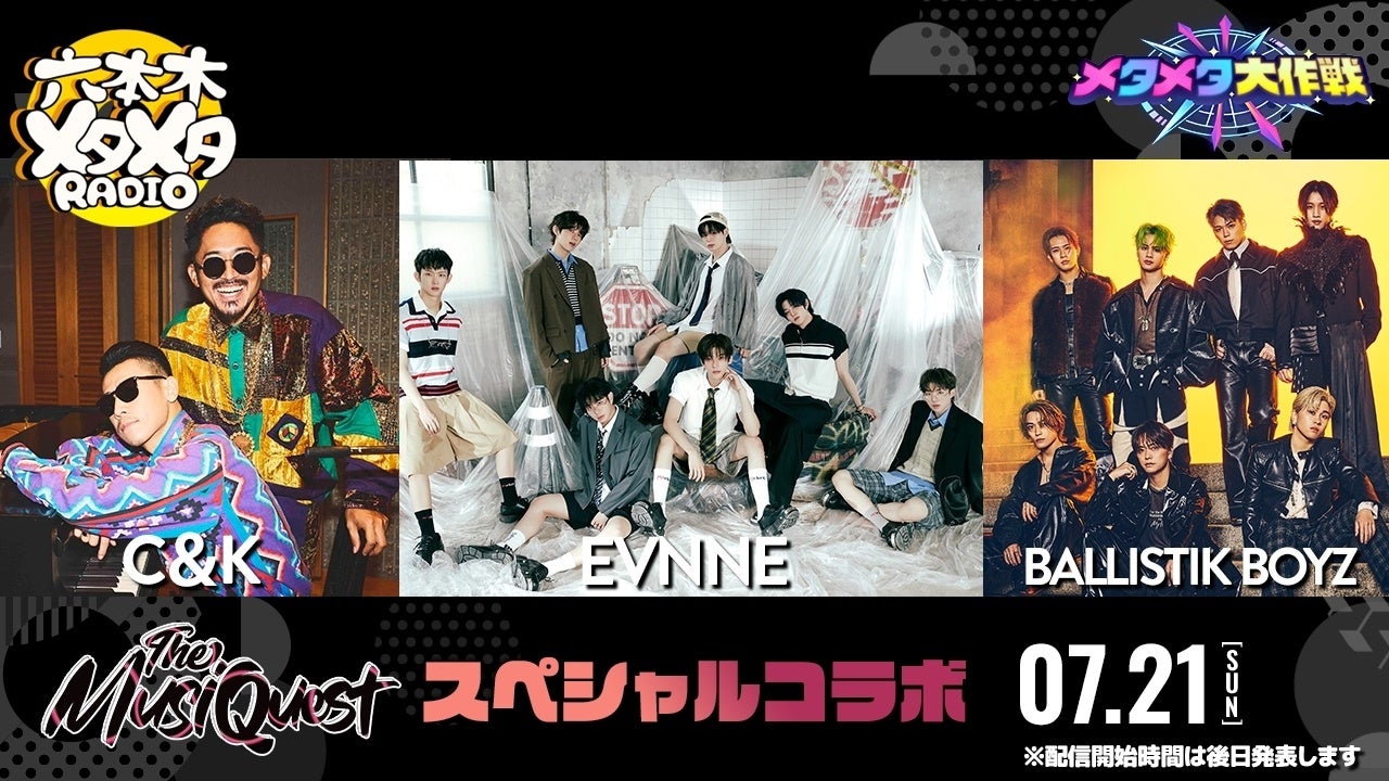 7月20日(土)・21日(日)にテレビ朝日が主催する音楽フェス『The MusiQuest(ザ・ミュージックエスト)』とのコラボ。フェスに出演するアーティストが、六本木メタメタRADIOにも登場します。