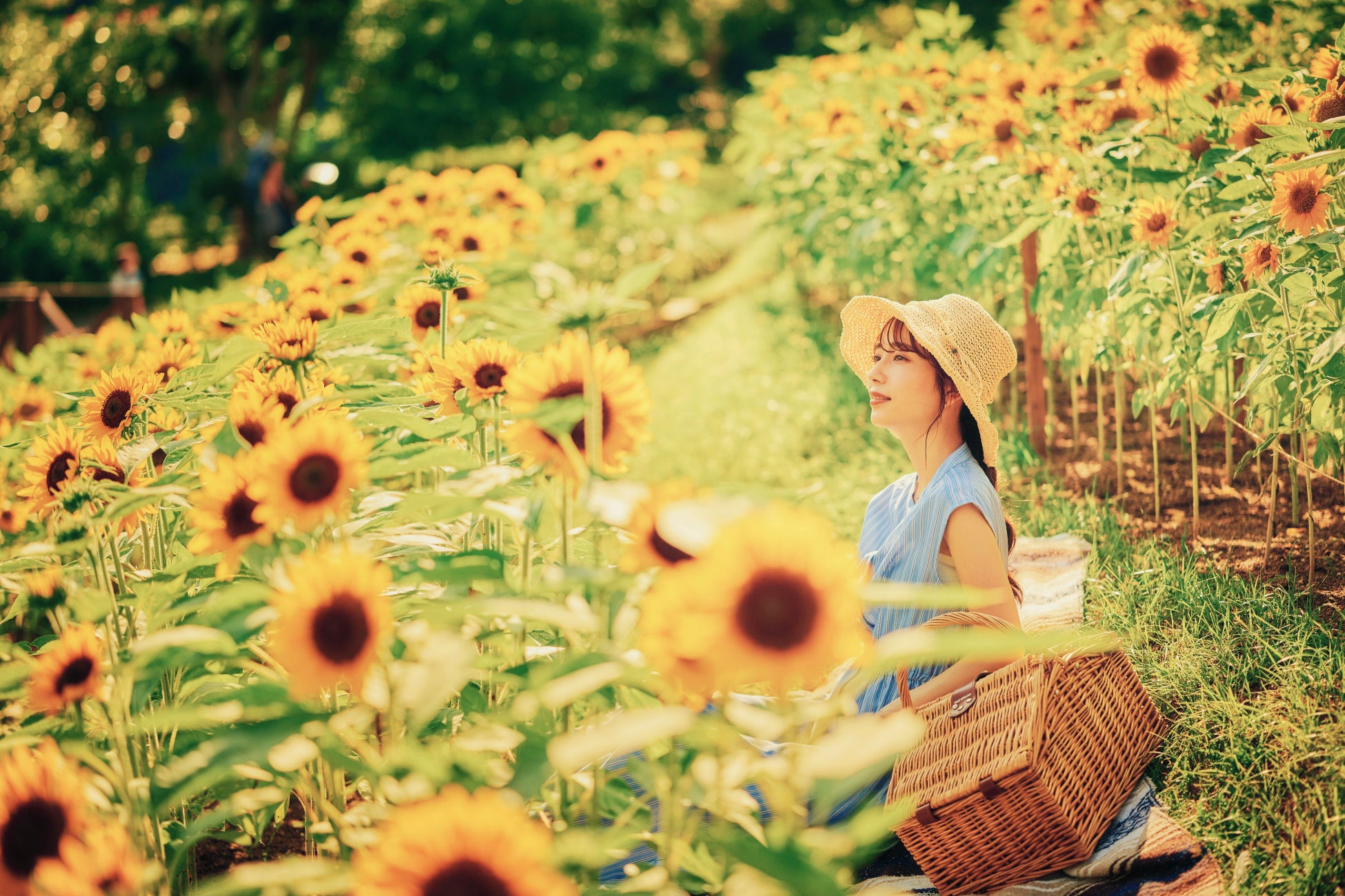 神戸布引ハーブ園では「きっと忘れない夏」をテーマにした夏のロケーションをお楽しみいただける、2つの「ひまわり畑」があります。できる限り長い期間お楽しみいただけるよう、2つのガーデンで品種の違うひまわりを植栽しています