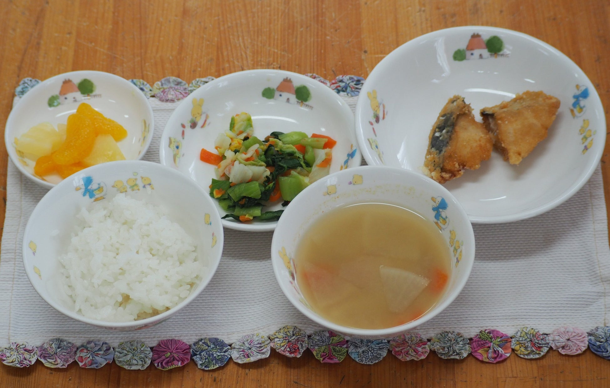 志田水産の担当者から魚について学んだ後は、実際に切り身になった魚を給食で実食しました。魚が食卓に届くまでの流れなどを知ったことで、子どもたちからは「今さっき触った魚だ!」「もっと感謝して食べないと」といった声が上がり、食材について理解を深めながら、おいしく給食をいただきました。
