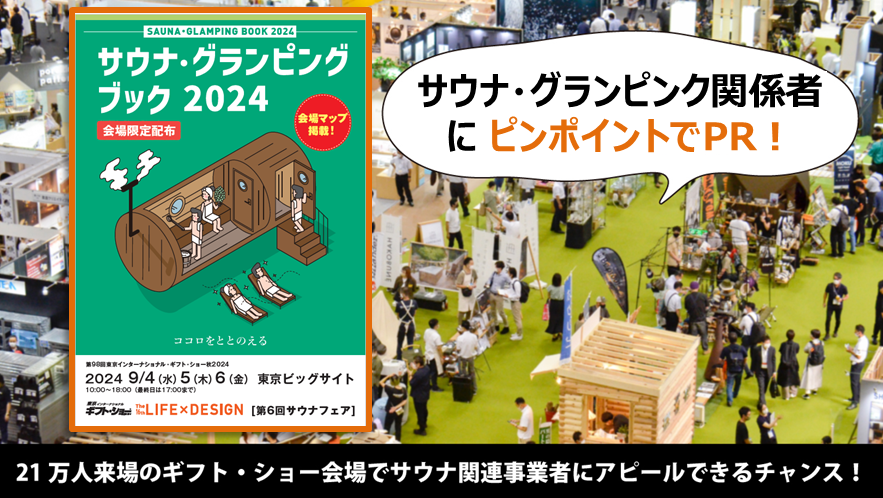 【温浴施設・サウナーへの訴求に!】21万人来場の展示会で配布される『サウナ・グランピングブック』 の広告募集中!