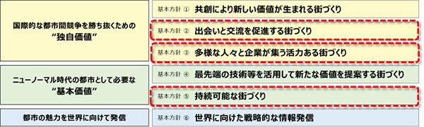 本取組みは、梅田ビジョンに掲げる基本方針(2)(3)(5)の街づくりを目指しています。