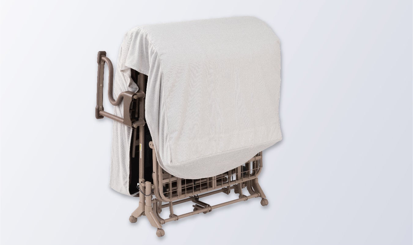 カバーを装着したままでもベッドを折りたたむことができ、移動が簡単です。
