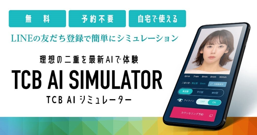 近年、二重整形をはじめとした“プチ整形”をメイクやファッションの一環として行う人が増えています。二重整形は、専用のスティックを使用した二重幅のシミュレーションが術前に可能ですが、小顔整形や目の下のクマ取りといったエイジングケア治療に関しては、これまで一部クリニックを除き、自然な術後のイメージをシミュレーションできず、施術前に不安を感じる患者様が多くいらっしゃいました。こうした不安を解消すべく、全国にクリニックを展開するTCBの様々な症例実績をもとにエイジングケア治療に特化したAIシミュレーターを開発。ご自宅でお気軽に自然なエイジングケアのイメージを体験いただき、安心して施術を受けていただける環境を整えました。
