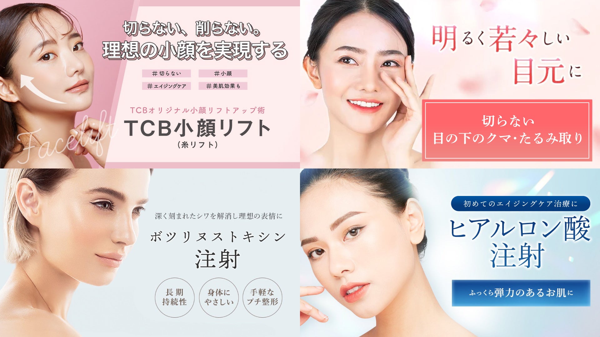 TCB東京中央美容外科は日本全国に112院(2024年6⽉現在)を展開する美容クリニックグループです。身体への負担の少ないプチ整形をはじめとしたさまざまなメニューを取り揃え、患者様の「キレイを幸せに」を実現します。「理想のあなたを着飾る」美容医療を。TCBは徹底したカウンセリングとシミュレーションにより、患者様の「理想」をどこまでも追い求めます。