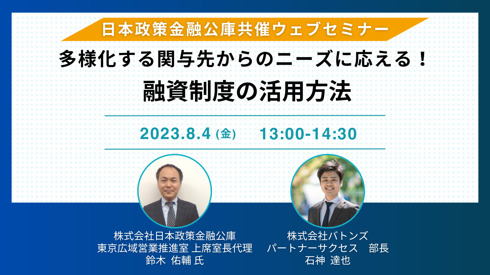 バトンズ、日本政策金融公庫と共催で「融資制度を活用した事業承継支援」に関するセミナーを開催