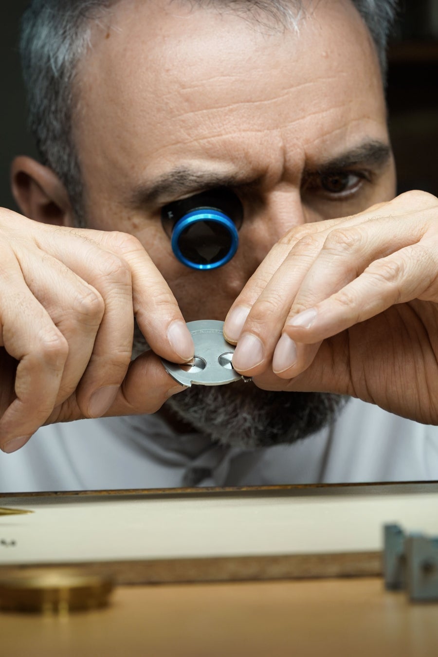 バランスホイールユニットは複数のレベルで構成されています。バランスリムが一つのレベル、ヒゲゼンマイが二つ目のレベルであり、スイスレバー脱進機にはさらに二つのレベル、すなわちインパルスジュエルとダートと呼ばれる安全装置が存在します。これにより、メインプレートとブリッジを除けば、合計で4つのレベルになります。コンスタンチン・チャイキンは、ダブルバランスホイールを使用することで、2つのバランスホイールに機能を分散させることにより、1つのレベルを省略しています。最初のバランスホイールはレバーと連動し、ヒゲゼンマイは2つ目のバランスホイールに取り付けられています。これが、コンスタンチン・チャイキンの発明です。さらに、インパルスジュエルと安全装置のレベルをできるだけ近づけることが可能になり、可動部分がないため、よりコンパクトな設計が実現しました。