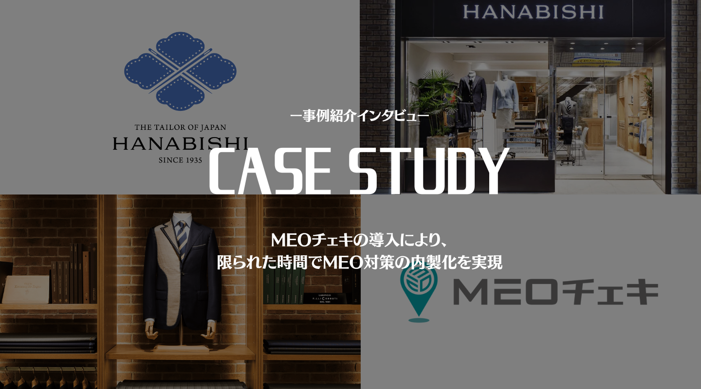 株式会社花菱様は、オーダースーツを提供しているブランド「HANABISHI」を日本各地に18店舗を展開しております。MEOチェキを導入する前は、GoogleビジネスプロフィールおよびSNSの運用および管理を外部企業に委託されていました。外部企業に運用を委託していたことにより、MEO対策に関するノウハウを蓄積できず、課題に感じられていたと言います。
