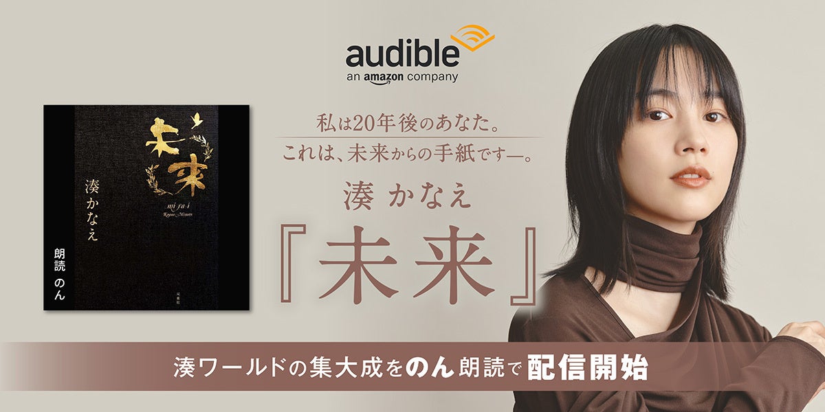 世界最大級のオーディオブックおよび音声コンテンツ制作・配信サービスであるAmazon オーディブル(以下、Audible)は、11月14日から湊かなえさんの作品を4日連続で配信しています。4日連続配信のクライマックスはのんさんの朗読による『未来』で、11月17日からお楽しみいただけます。