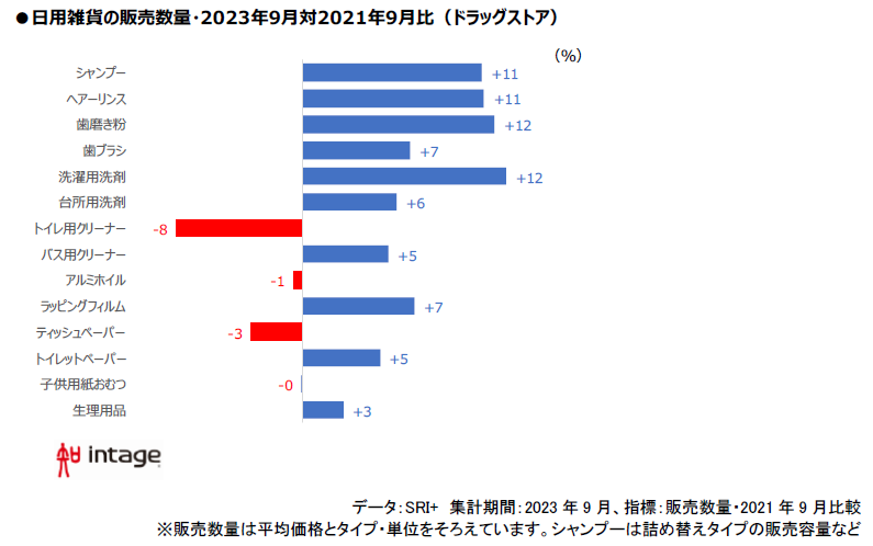 日用雑貨は高止まり傾向。ただし価格が上がっても販売数量の減少は見られず
