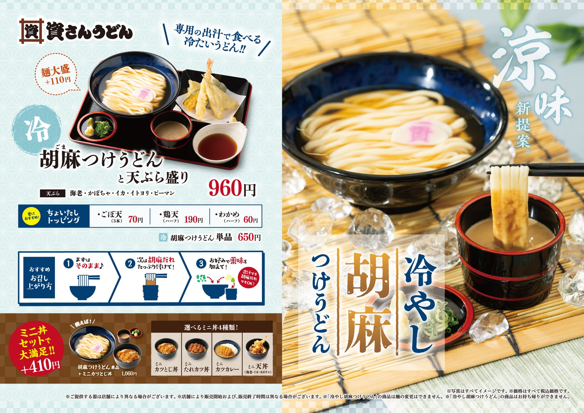 北九州で約40年に渡り愛される資さん(すけさん)うどんを展開する株式会社資さん(本社:福岡県北九州市、代表取締役:佐藤 崇史)は、6月26日(水)~「冷やし胡麻つけうどん」の販売を開始します。