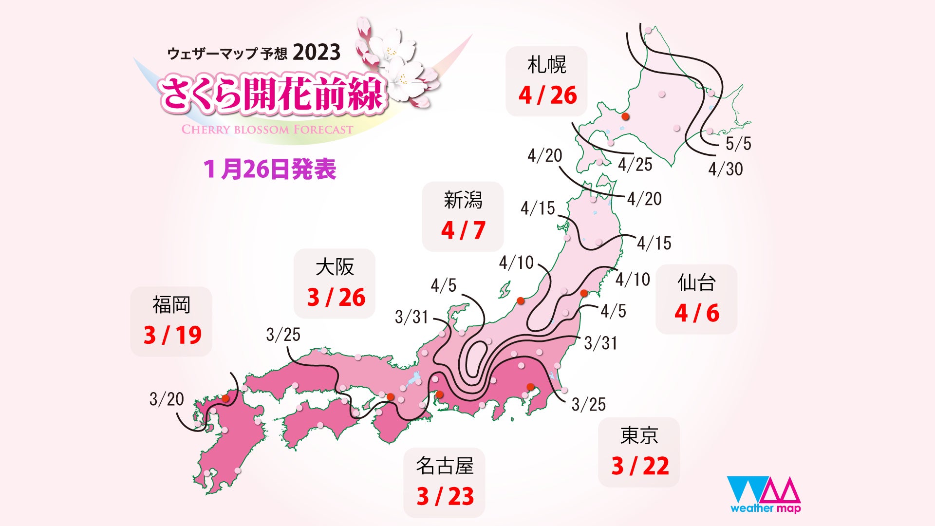 ウェザーマップ、2023年第一回「さくら開花予想」を発表
