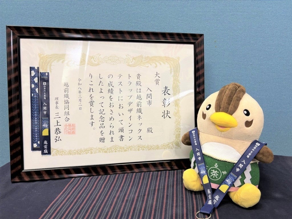2025年の大阪・関西万博を経て、日本三大銘茶「狭山茶」のPRに力を入れている埼玉県入間市。このたび、入間市がデザインしたオリジナルネックストラップが、「第10回越前織ネックストラップデザインコンテスト」において全国188点の応募の中から大賞(10点)に選ばれました。織ネーム・ワッペン・織テープで国内シェアトップを誇る福井県の地場産業「越前織」の技術によって、入間市の想いを形にしたネックストラップが完成しました。