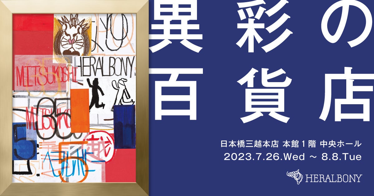 株式会社ヘラルボニー(以下、ヘラルボニー)が運営するアートライフスタイルブランド「HERALBONY」は、7月26日(水)〜 8月8日(火)の14日間、日本橋三越本店 本館1階 中央ホールにて、ポップアップストア「異彩の百貨店(いさいのひゃっかてん)」を開催します。三越が今年で創業350周年を迎えることを記念し、「三越創業350周年」「ヘラルボニー創業5周年」をテーマに作家・藤田望人氏がオリジナルアートを作成、メインビジュアルに起用いたしました。