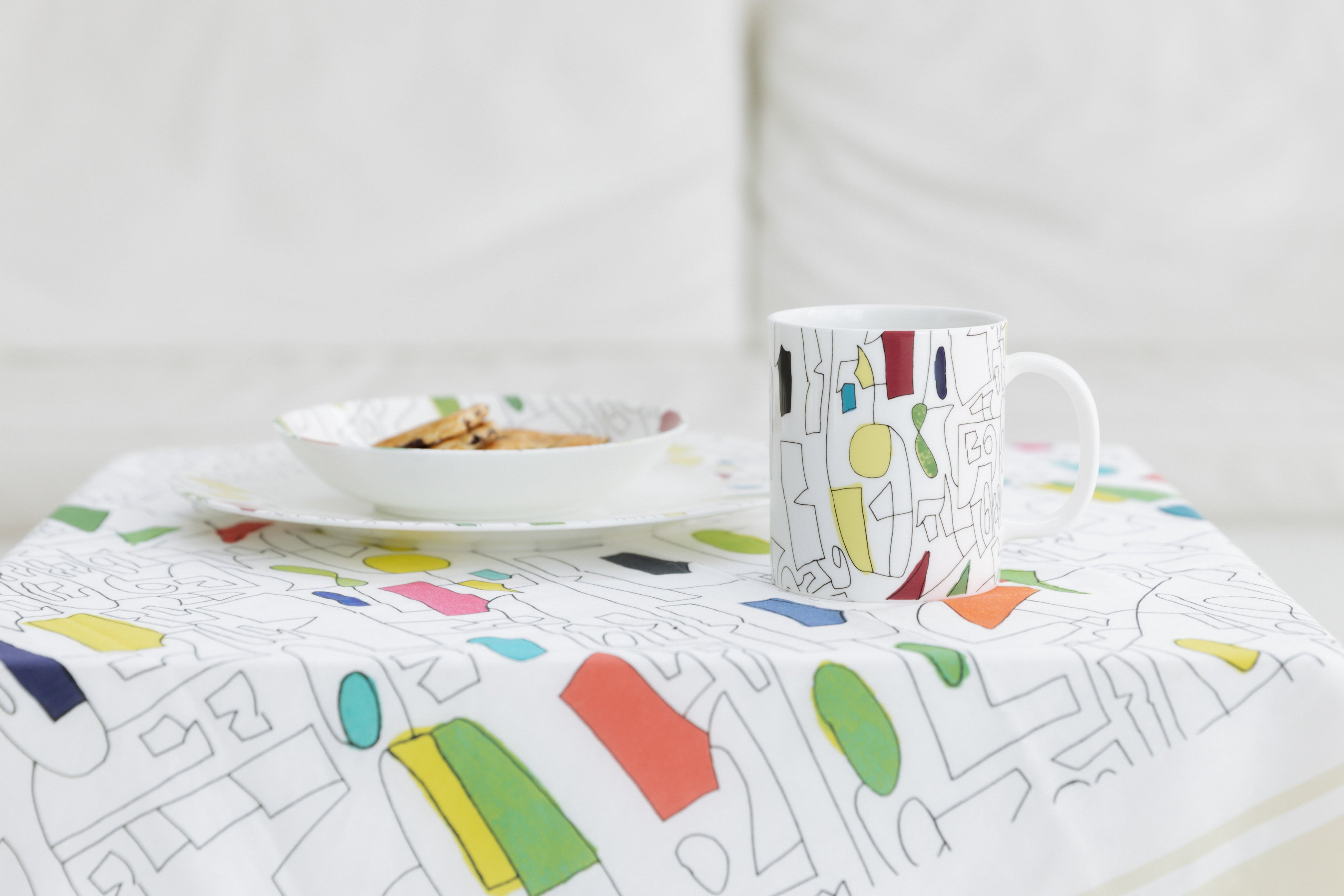 純白のファインボーンチャイナに作家の作品がニッコーの転写紙技術によって細部まで再現されたアートマグカップ。 安定感のある寸胴タイプでハンドル部分が丸く大きめなので、しっかりと握ることができ持ちやすいマグカップです。同アートのプレートやインテリアとあわせてテーブルコーディネートもおすすめです。