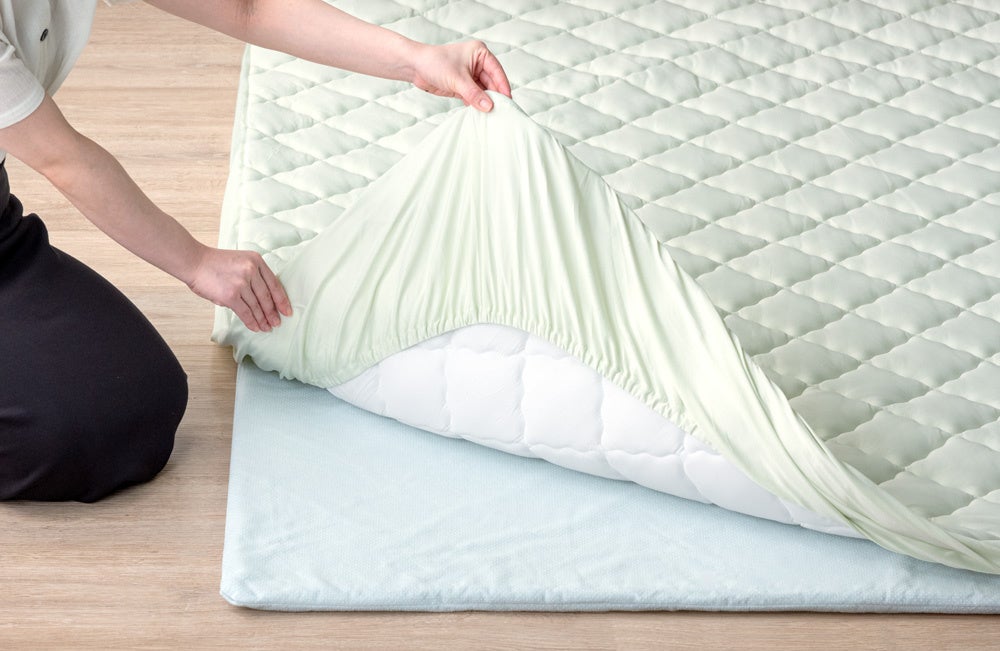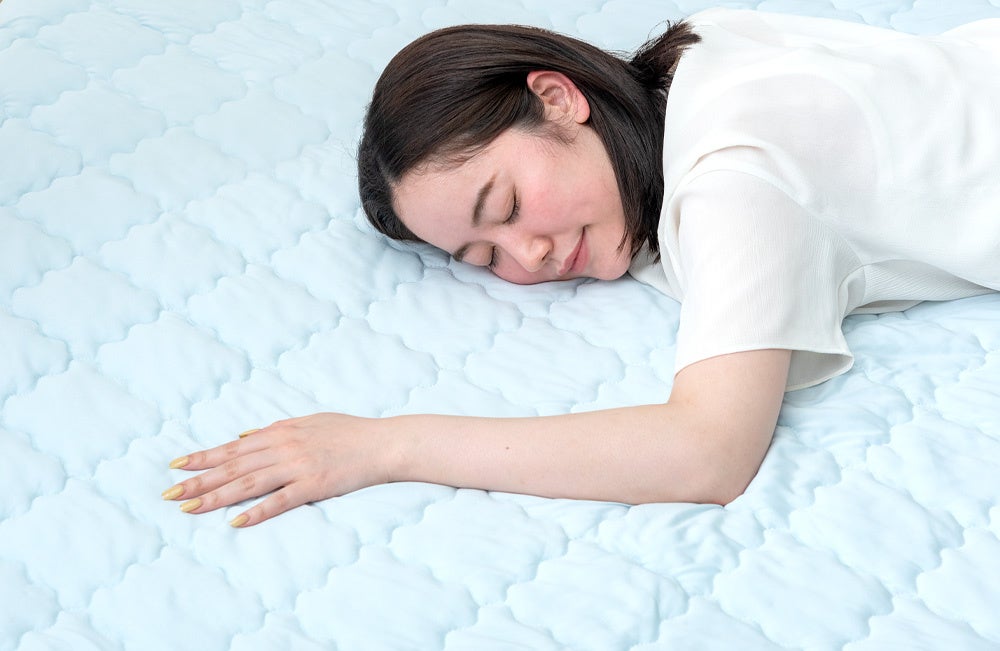 フランネルタイプはサラッとした手触りでオールシーズン快適に使用できますが、特に夏場は汗をかきやすく熱がこもりやすい特徴やお客様から「夏でもよりひんやり快適に使用したい」というお声をもとに、今回タンスのゲンは弾力のあるクッション性はそのままに夏をより涼しく快適に過ごせる接触冷感タイプのカバーを新たに開発しました。