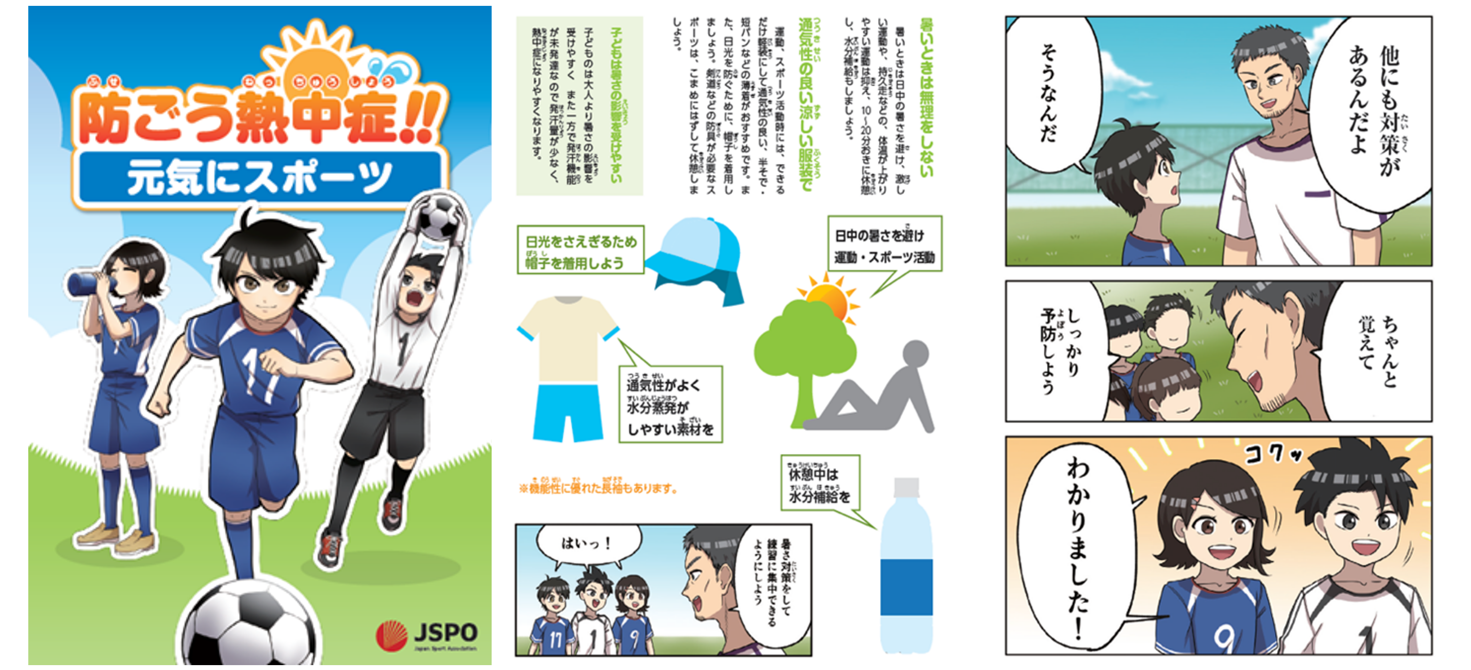スポーツを「する」「みる」「ささえる」ための環境づくりを行うJSPO(正式名称:公益財団法人日本スポーツ協会 東京都新宿区/会長 伊藤雅俊)は、子どもにとっても読みやすいコミック形式によるデジタルブック「防ごう熱中症!!元気にスポーツ」を作成し、7月から公開しています。