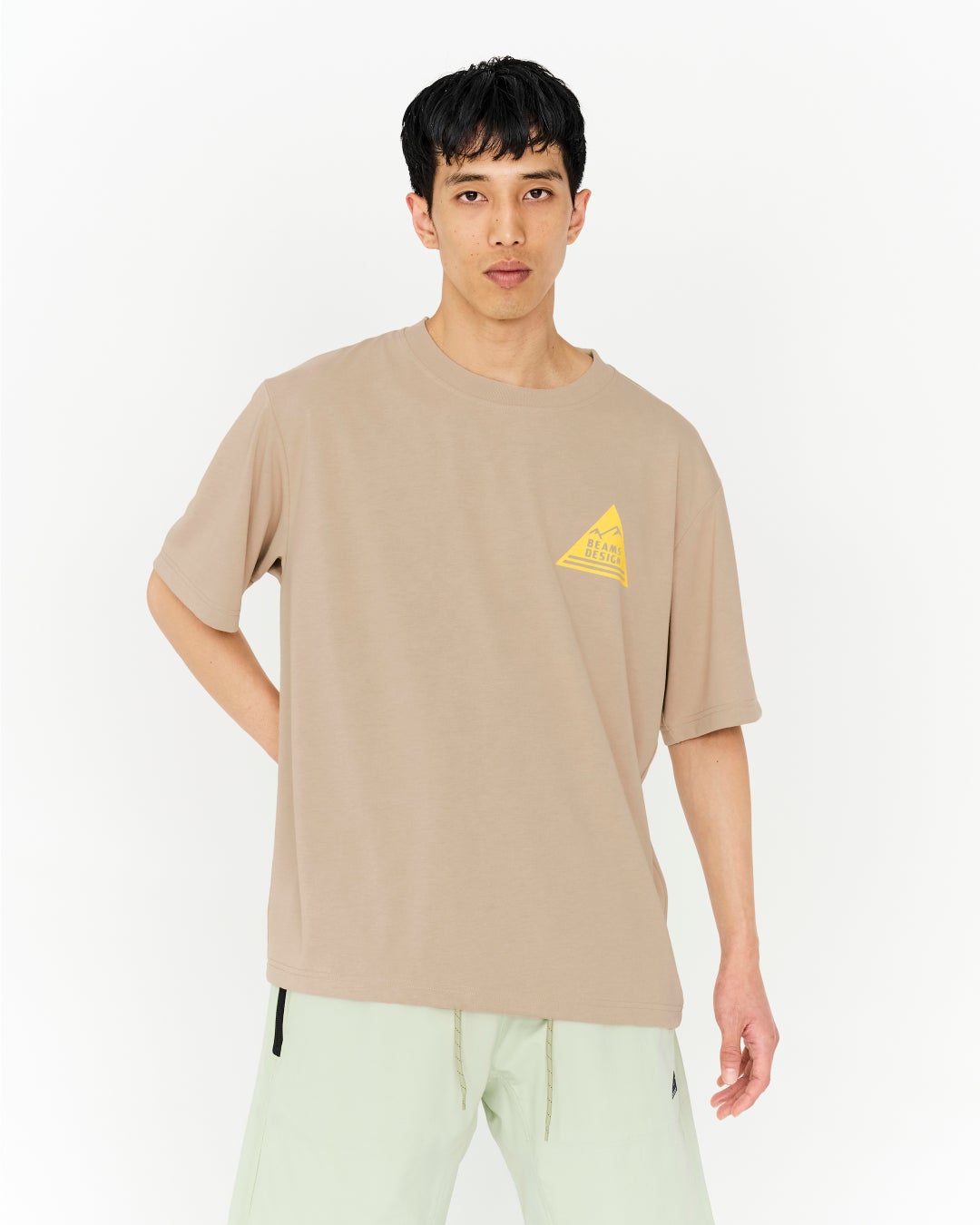 程よいオーバーシルエットで、脱・本気スポーツスタイルに仕上げた「ドライメッシュロゴTシャツ」は渋めのカラー採用がポイントで、背面を通気の良いメッシュ素材で切り返え、実用的な機能性も抜群です。