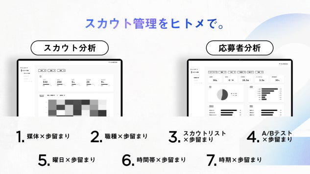 さまざまな指標分析を通し、媒体毎に最適なスカウト文面や送付タイミングを策定/可視化 して、スカウト送付における効果を最大化します。