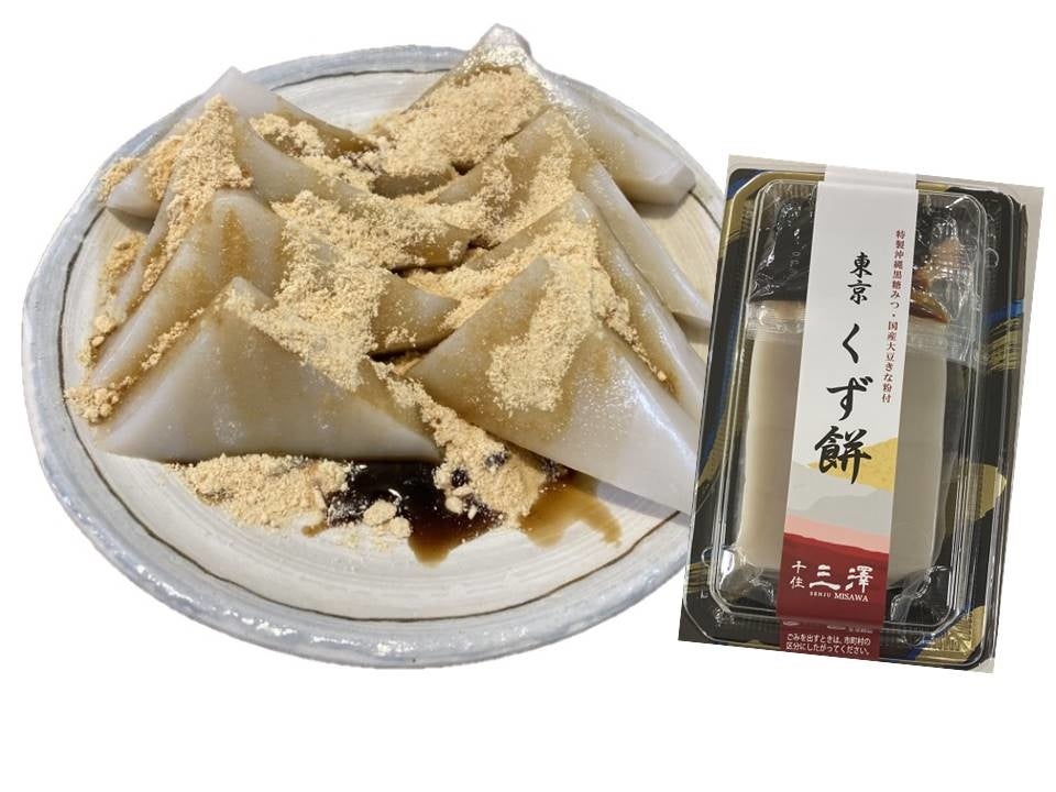 当社オリジナル商品「千住三澤 東京くず餅」を新発売しました。昭和18年創業の「ふ菓子」と「くず餅」の老舗菓子メーカーである株式会社ミサワ食品様のご協力により開発した商品で、もちもちとした食感となめらかな舌触りが特長です。これからの暑い季節にぴったりの「東京くず餅」は、サミットストア全店の和菓子売場にて販売しております。ぜひ、ご賞味ください。