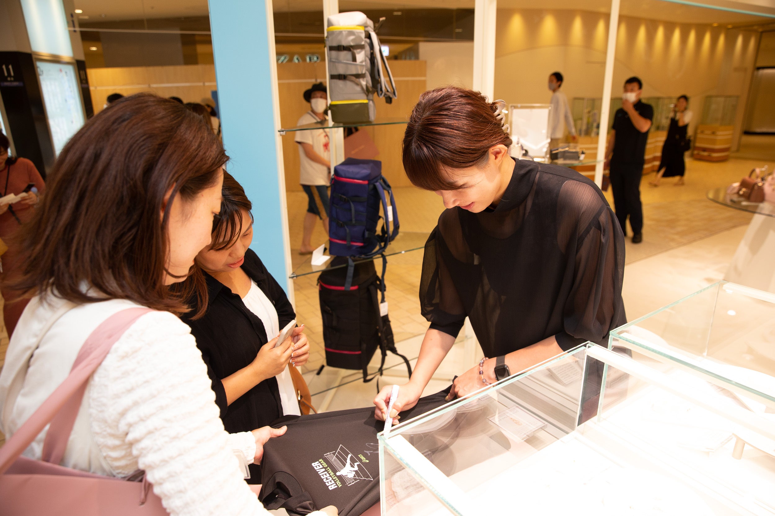 サマンサタバサ 東京スカイツリータウン・ソラマチ店(2F)で開催した来店イベントでは、事前にご購入いただいたコラボバッグをご持参いただいたお客様を対象に、サイン&写真撮影会を開催。