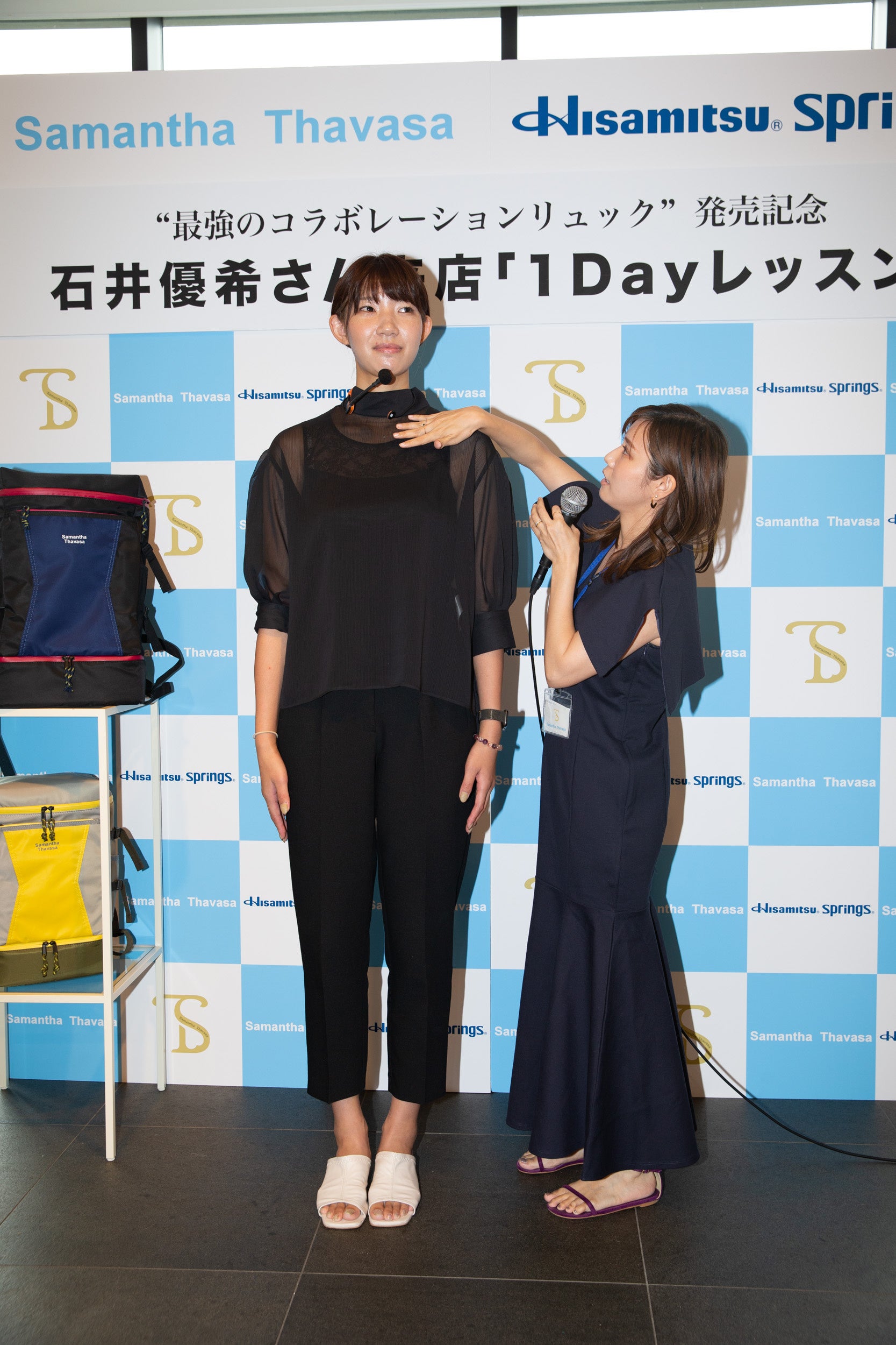 骨格診断ファッションアナリストの資格をもつサマンサ女子が、石井さんの骨格診断を行い、ファッションについておススメのポイントを伝授。