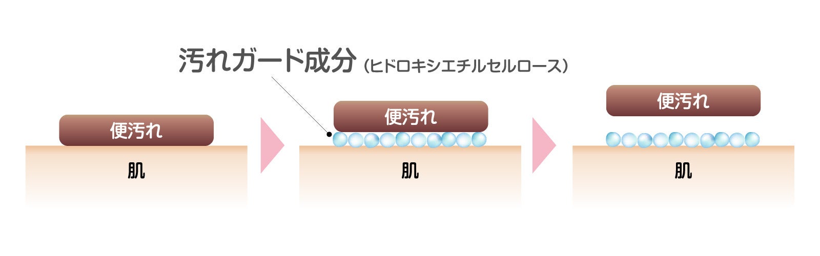 汚れガード成分が肌に付着することにより、排泄スキンケアの流れの「洗浄」の中で一番はじめに行う