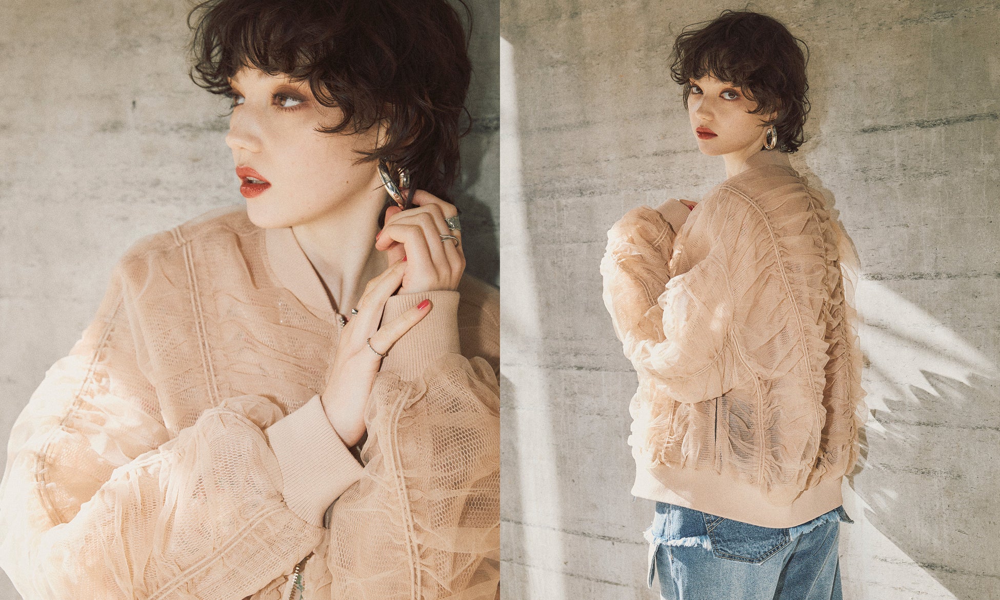 今季は柔らかいカラーのシアーやチュール素材の他、ピアスなど金具が付いたパンク感のあるアイテムも展開いたします。ELLEgirlらしく自由にスタイルミックスして楽しんでいただけるラインナップです。