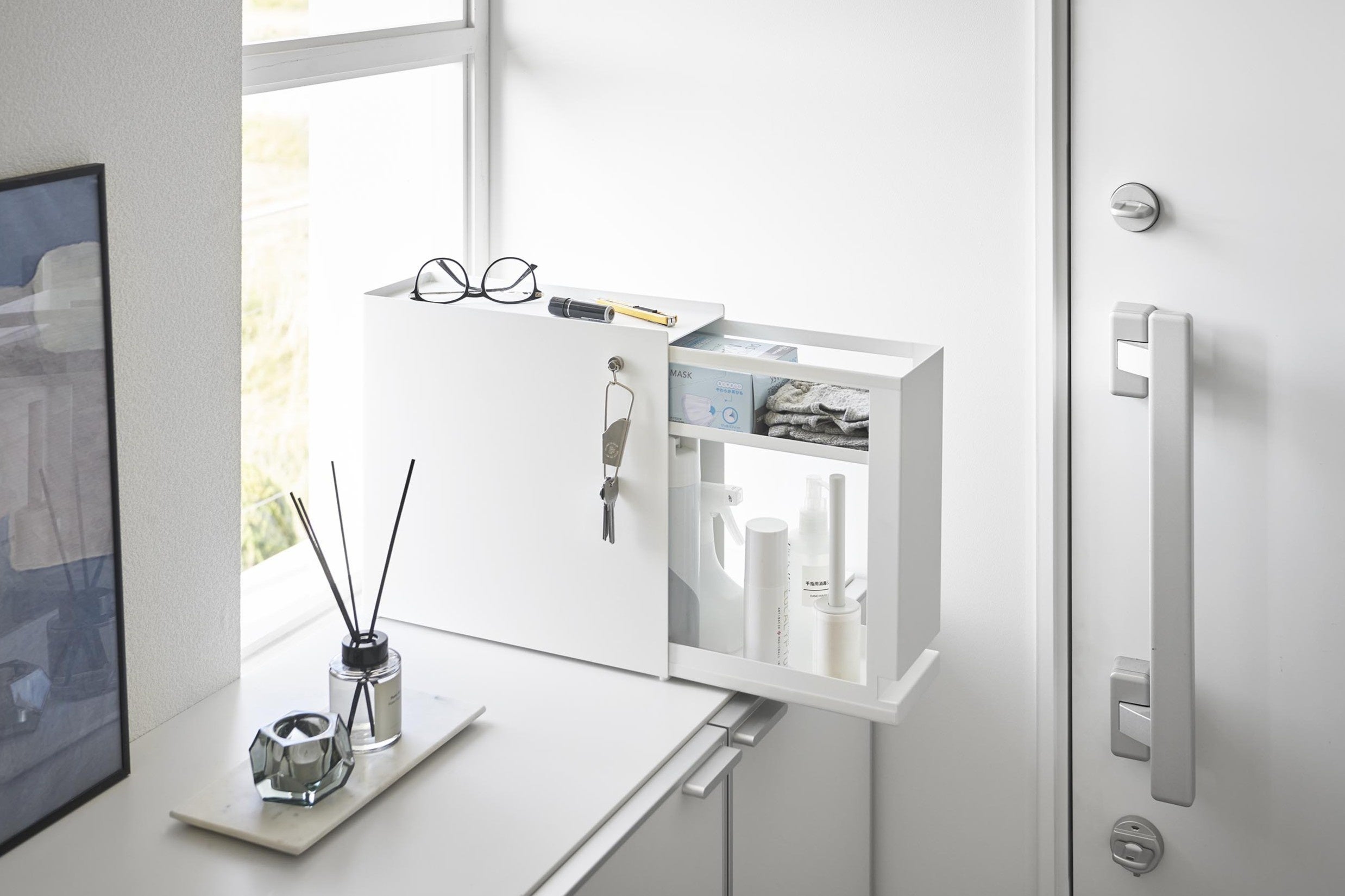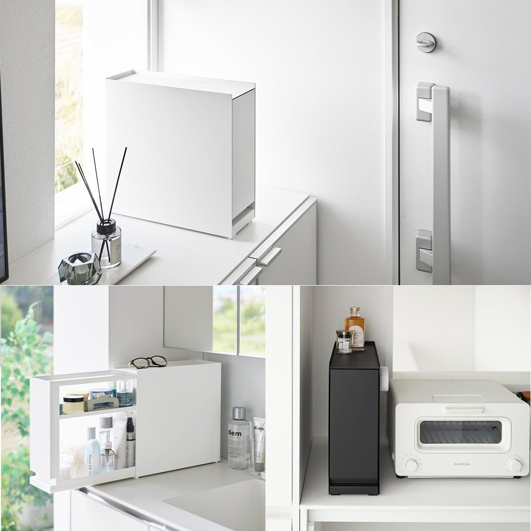 ヘアースプレーやワックス、歯ブラシ類の収納として洗面所への設置や、キッチンではカップボードに設置し調味料収納としてもおすすめです。