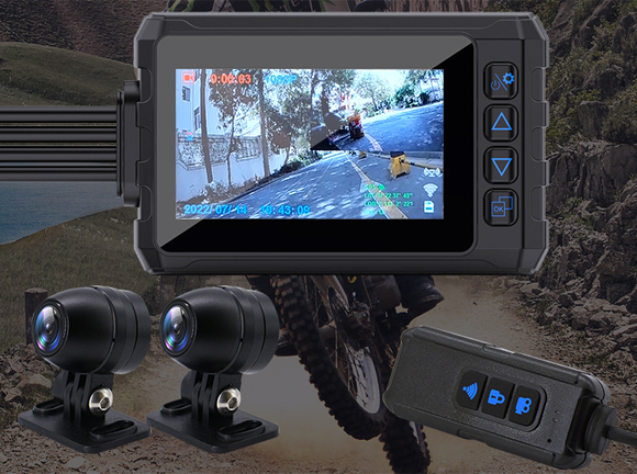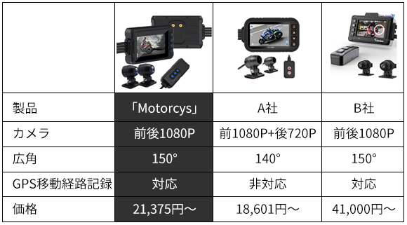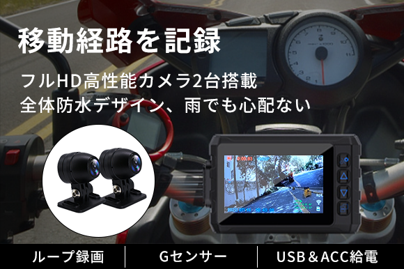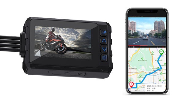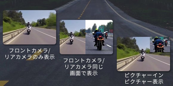 前後2台のカメラ映像を1画面に表示・150°超広角カメラを搭載GPS移動経路記録可能なバイクドラレコ「Motorcys」