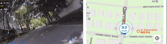走行後、アプリに接続して、録画映像と走行経路および走行速度を確認できます。走行中の出来事や位置情報も記録できます。