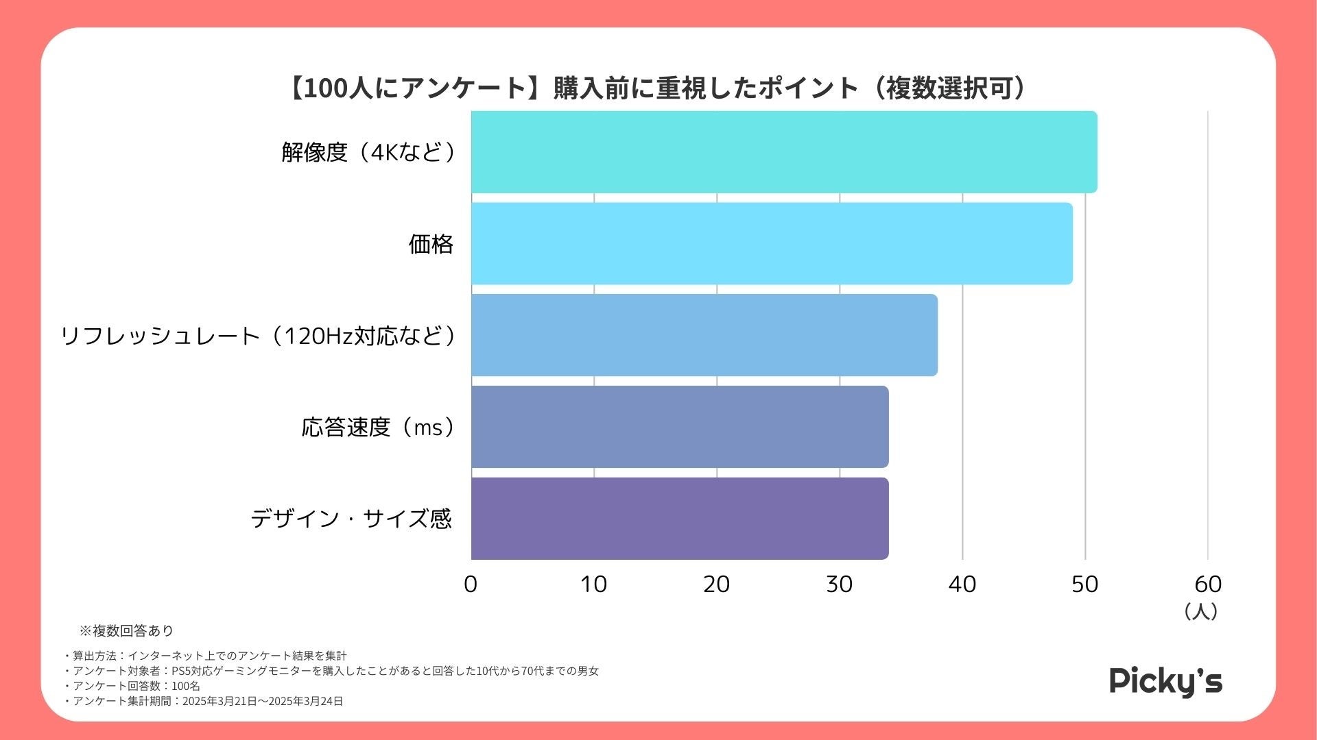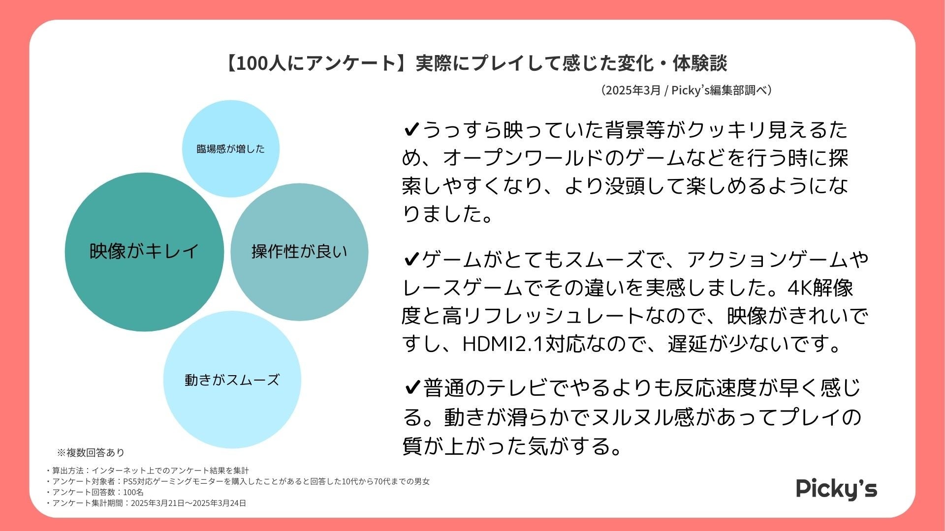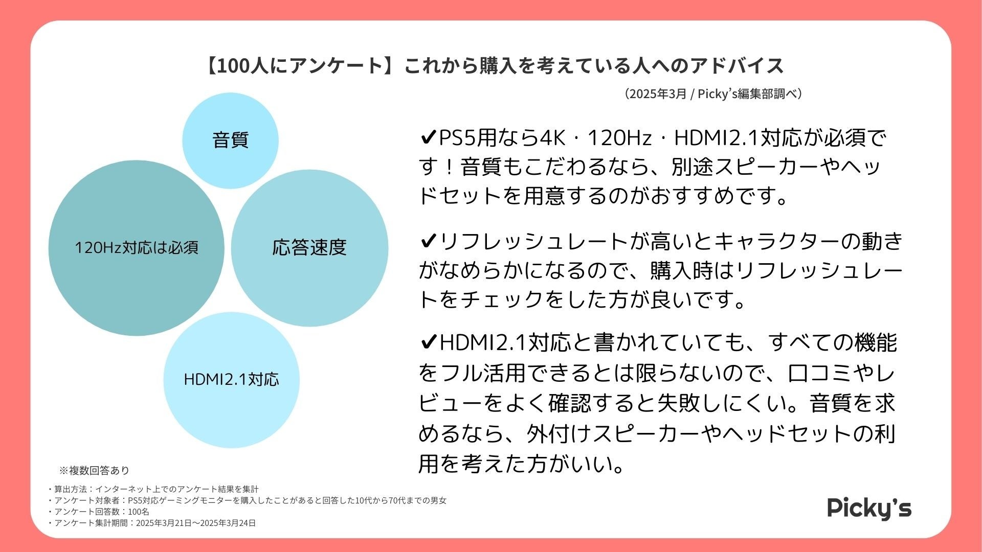 【100人にアンケート】PS5対応ゲーミングモニターを購入したユーザー調査を行いました。