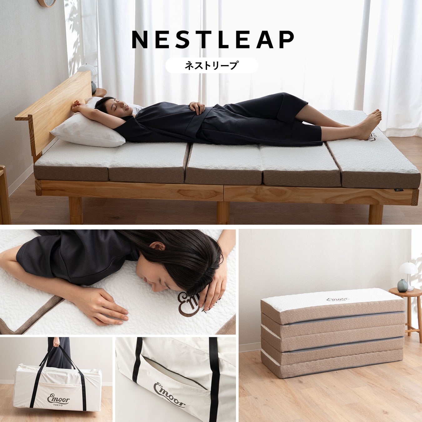 健康家具ブランドEMOOR(エムール)は、収納性と快適な寝心地を兼ね備えた『NESTLEAP(ネストリープ)5つ折りマットレス』の販売を開始しました。