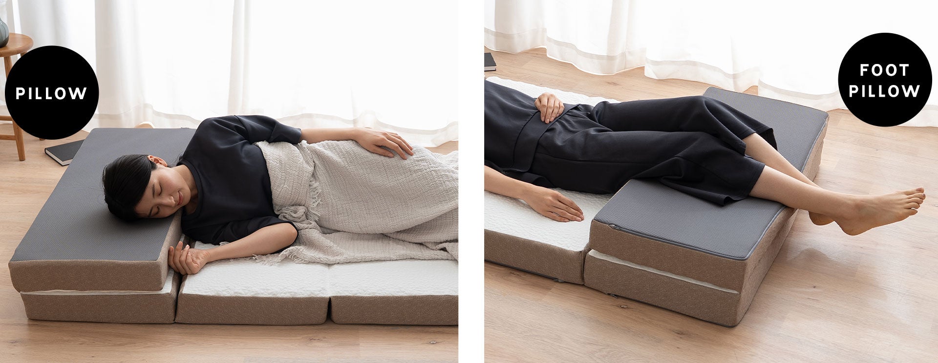 5つ折り構造を活かし、マットレスの一部を重ねることで、枕や足枕として使うこともできます。急いで準備したので、枕を用意できなかった…などあらゆるシーンで活躍します。
