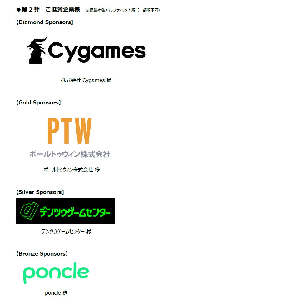 第1弾発表に続き、新たにスポンサー様が決定いたしましたのでお知らせいたします。