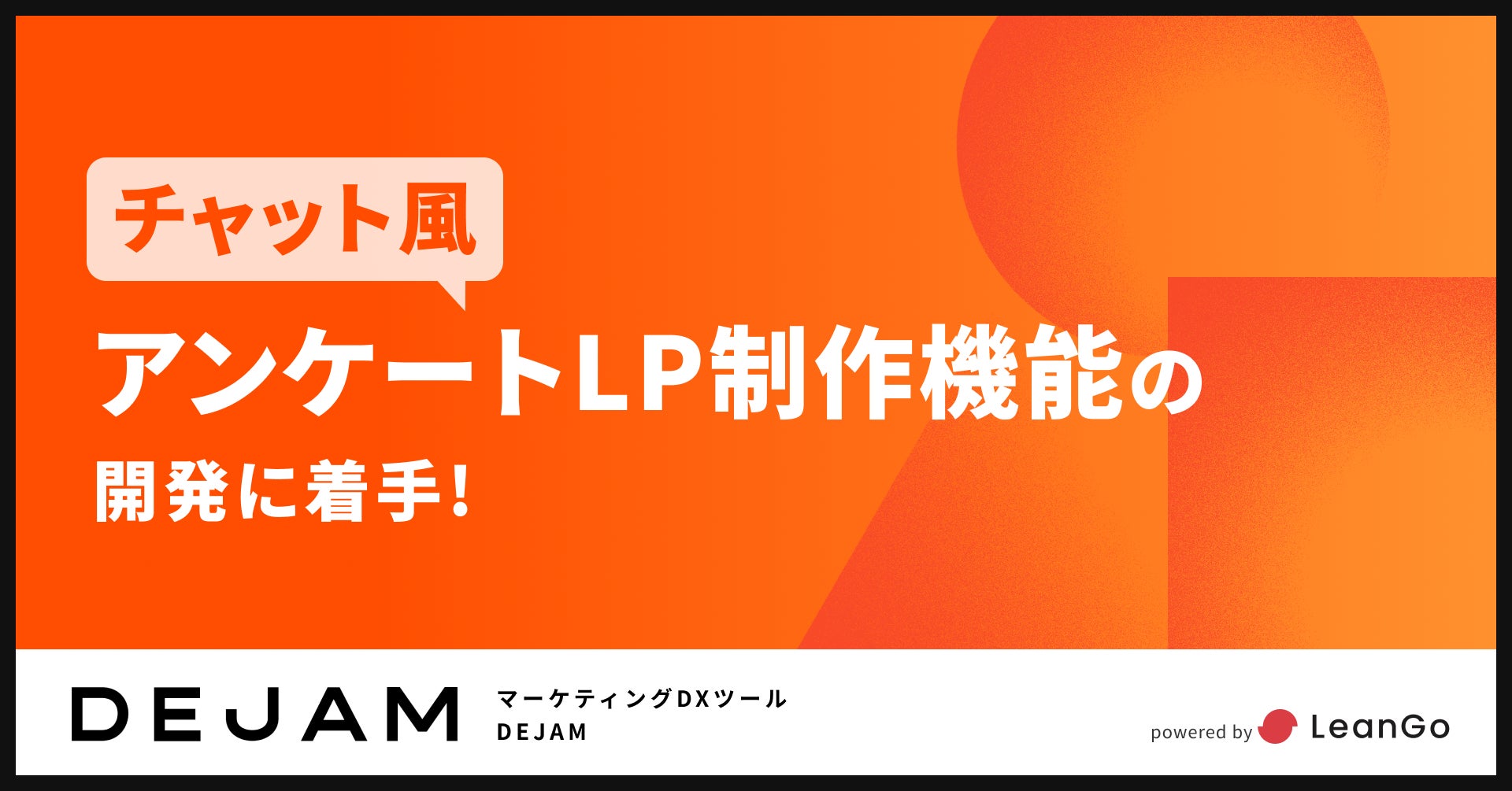株式会社LeanGo (本社:東京都目黒区、代表取締役:平井 翔吏、以下 弊社) は、自社の運営するフルファネルマーケティング支援ツール「DEJAM( https://leango.co.jp/dejam/ )」でチャット風アンケートLP制作機能の開発に着手したことをお知らせいたします。
