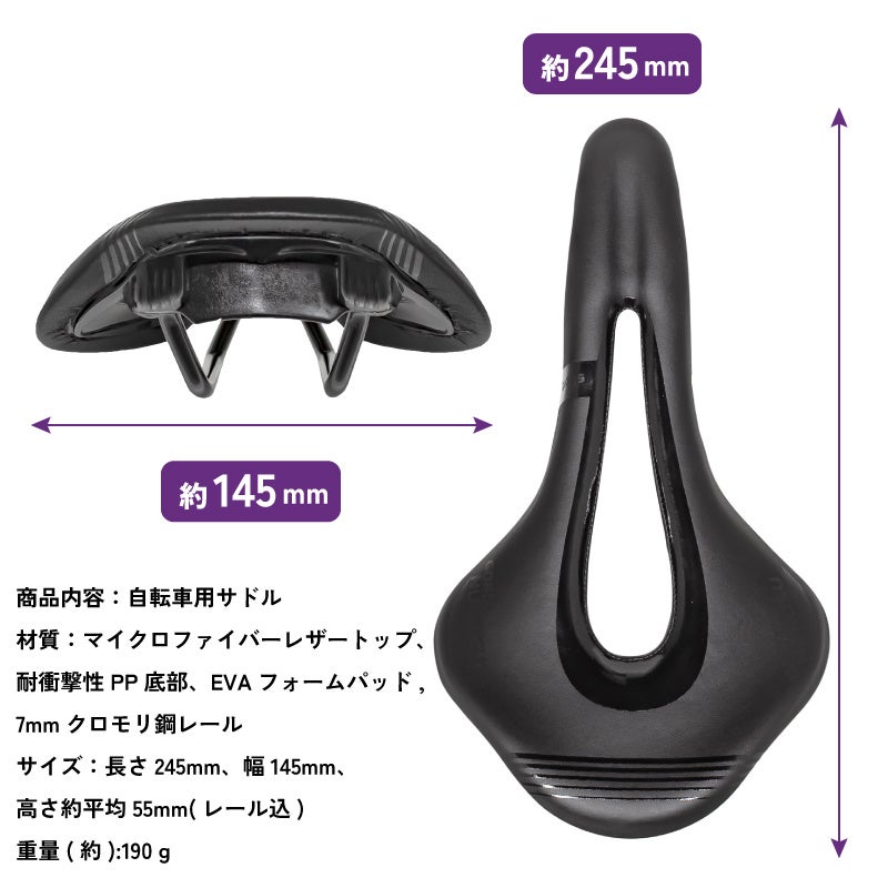 ロードバイクやクロスバイク、マウンテンバイクなどスポーツ自転車に最適なサドルです。