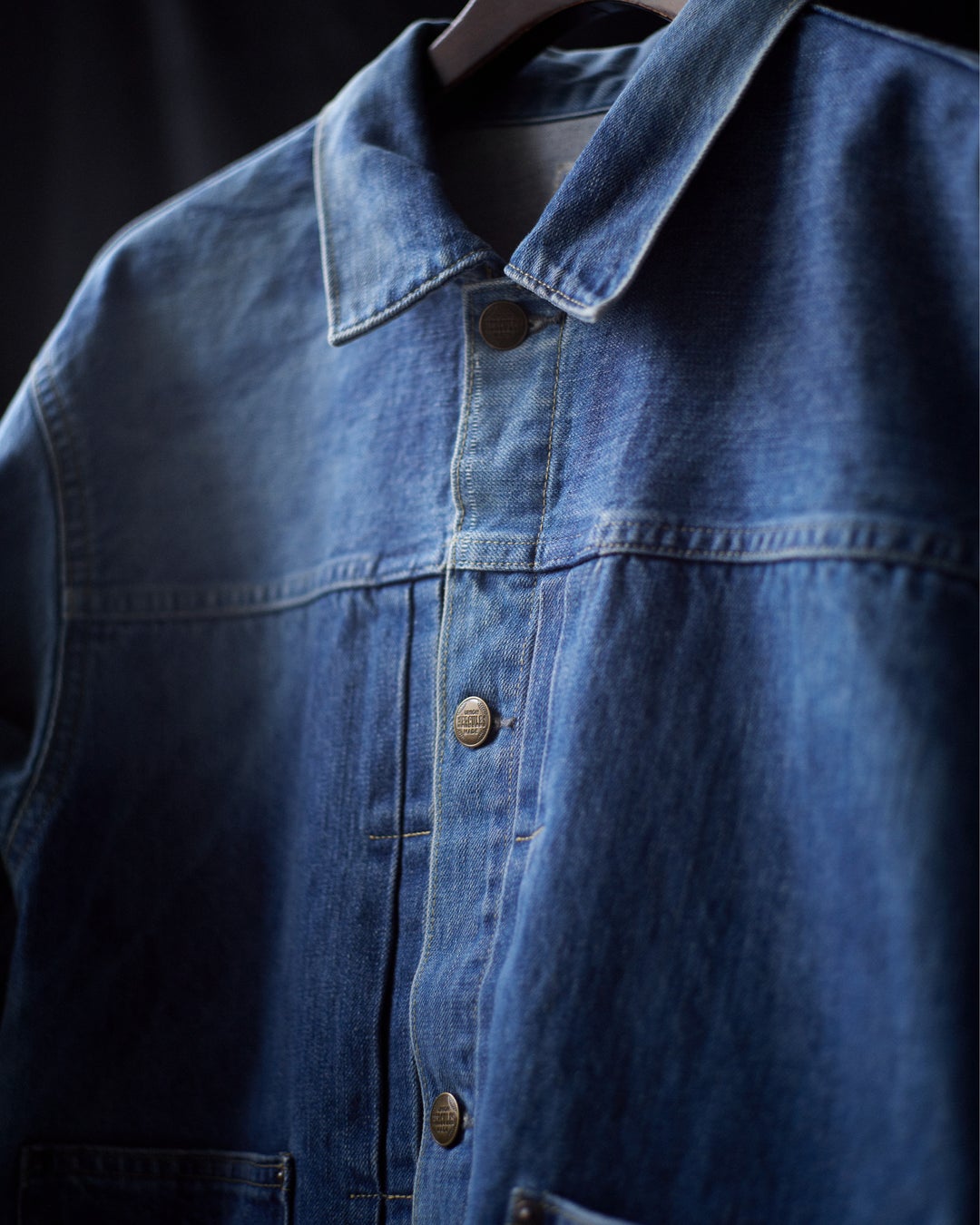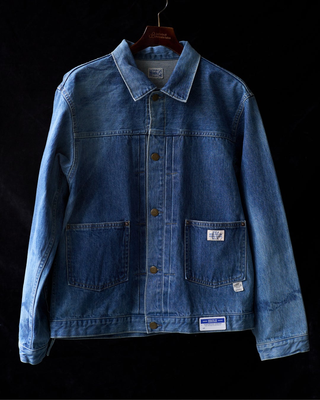 ジョンブルが監修する初のユニオン ヘラクレス メイドのコレクションは、オーバーオール、ワークパンツ、チョアジャケット、デニムジャケットの4つのアイテムをそれぞれ5通りのヴィンテージ加工で展開。価格帯は、オーバーオールが2万6000〜3万8000円、ワークパンツが2万2000〜3万1000円、チョアジャケットが2万7000〜3万7000円、デニムジャケットが2万7000〜3万7000円(いずれも税抜)。