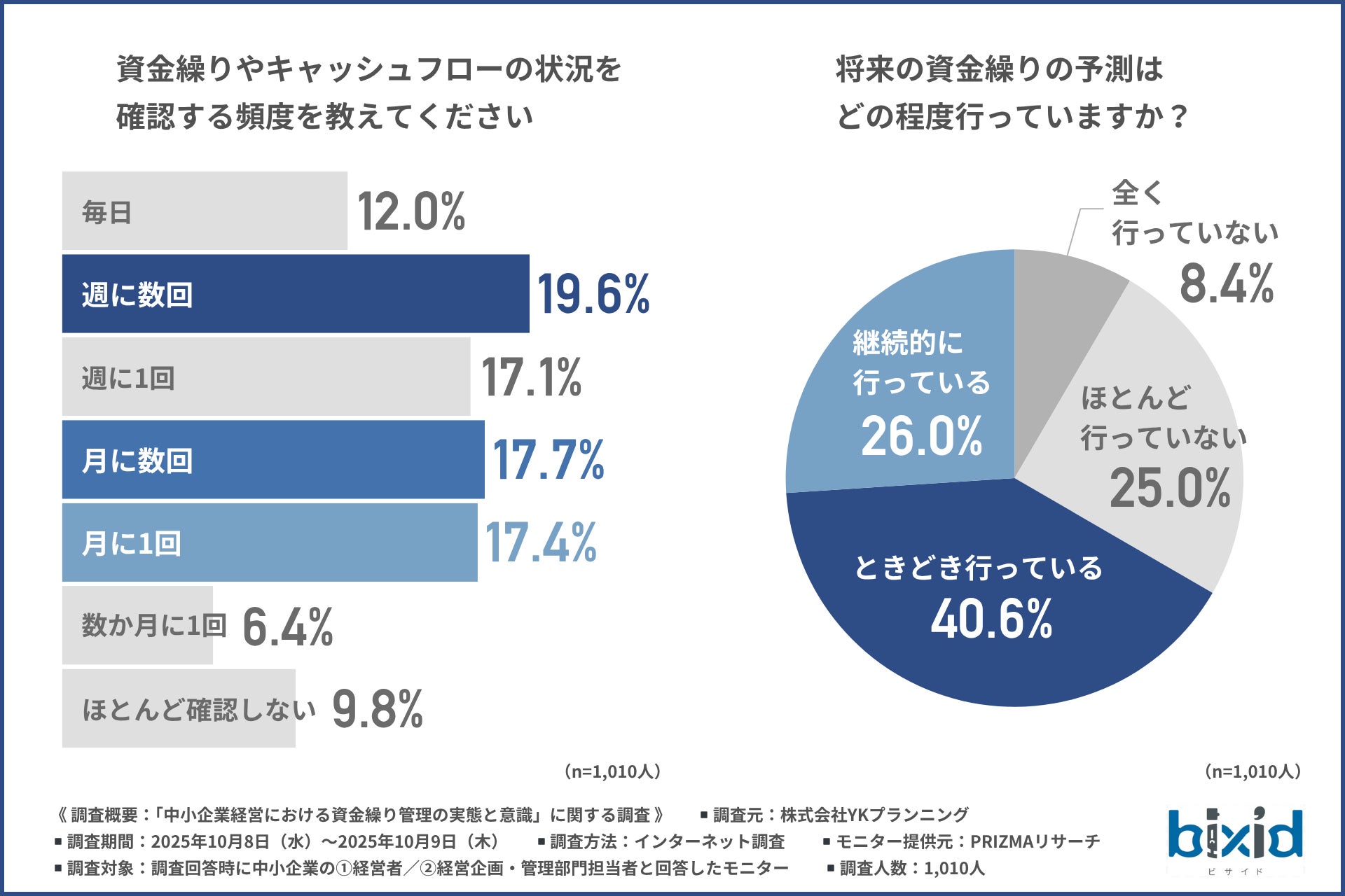 今回、「中小企業経営における資金繰り管理の実態と意識」に関する調査を実施した株式会社YKプランニングは、経営支援クラウド『bixid(ビサイド)』(https://bixid.net/)を提供しています。