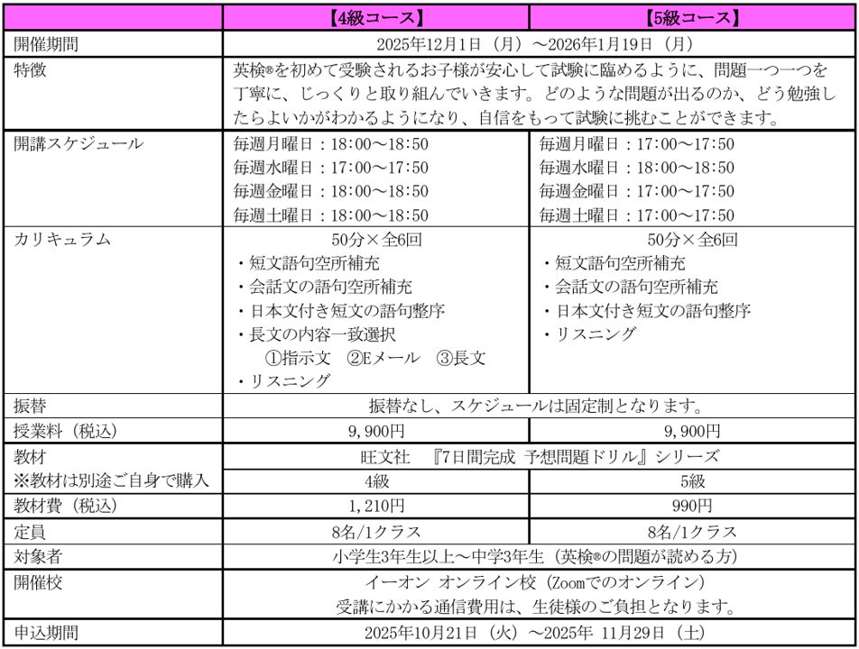 ~2026年1月英検(R)試験に向け、オンライン校キッズクラス~