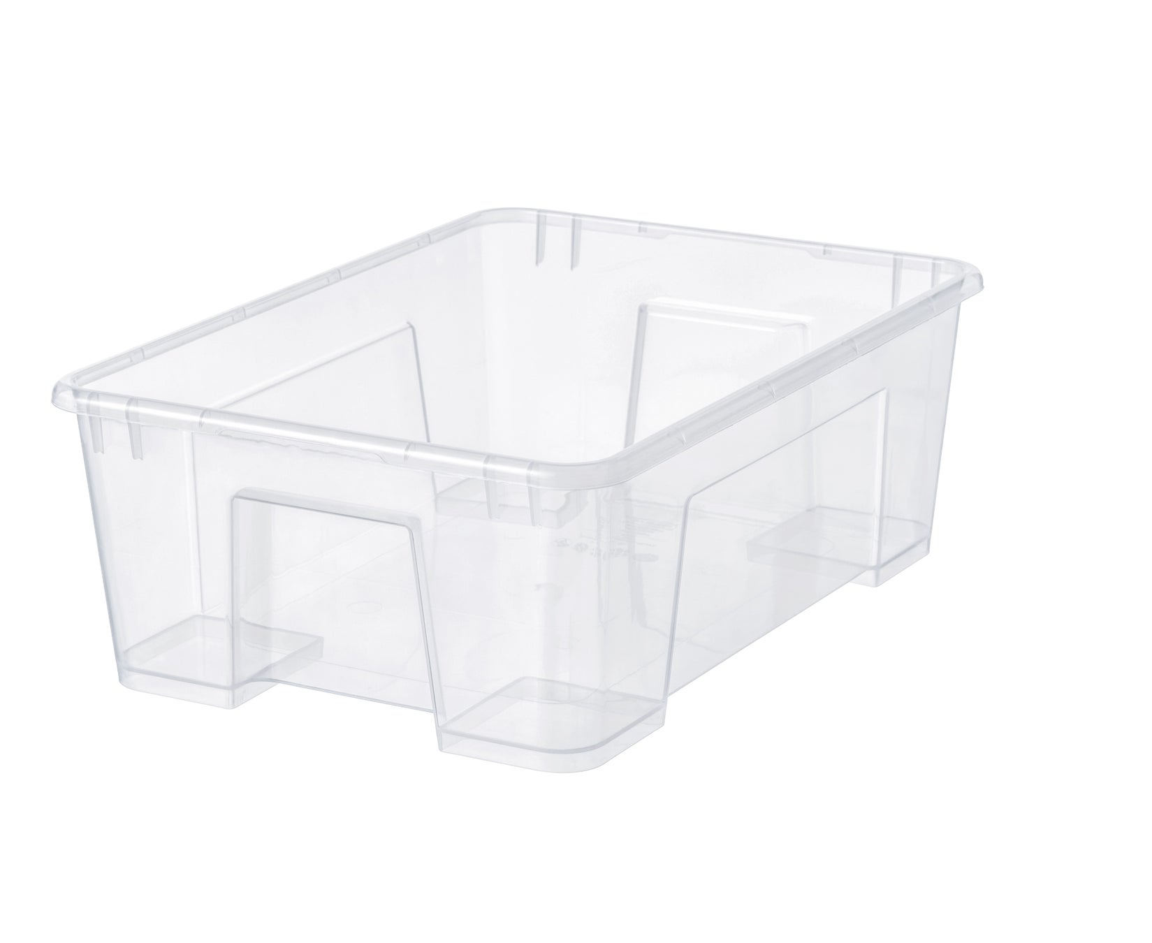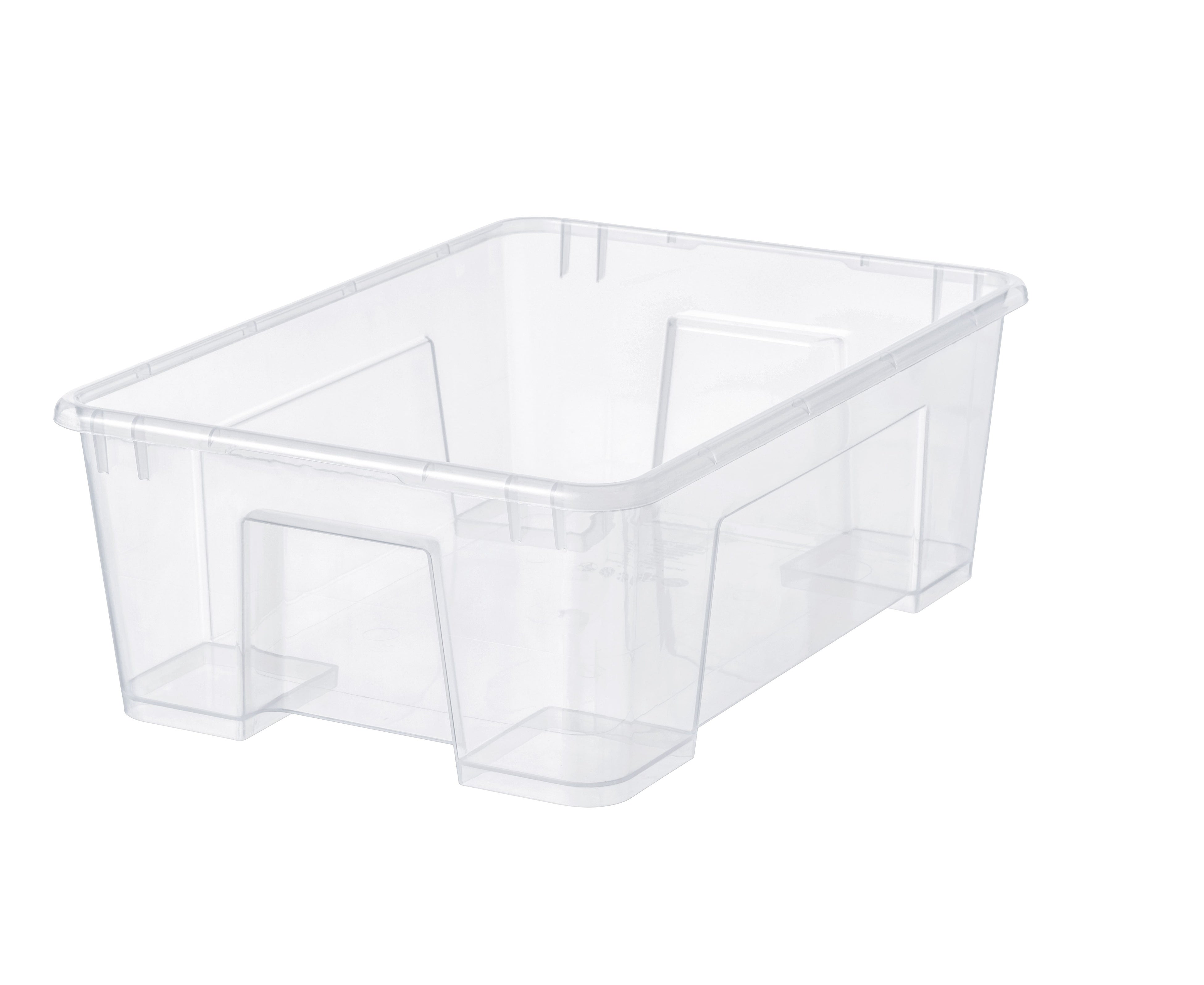 透明なプラスチック製の頑丈なボックスは、季節物から掃除用品まで色々なものをしまうのに便利です。中に何が入っているのかすぐに確認できるので整理整頓に役立ちます。さらに別売りのSAMLA/サムラ ふたを組み合わせると、ボックスを重ねて収納できるのでスペースを有効活用できます。