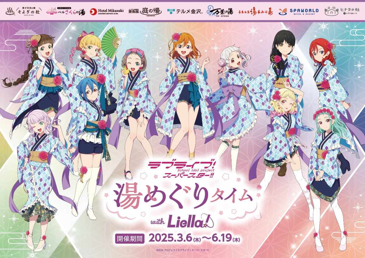 IPを活用したイベント事業・グッズ事業を手がける株式会社イーディス(本社:東京都豊島区、代表取締役:森俊平、以下イーディス)は、株式会社オリグレス協力の元、TVアニメ「ラブライブ!スーパースター!!」と全国9か所の温浴施設とのコラボイベント「ラブライブ!スーパースター!! 湯めぐりタイム with Liella!」を2025年3月6日(木)~6月19日(木)の期間に開催することをお知らせいたします。