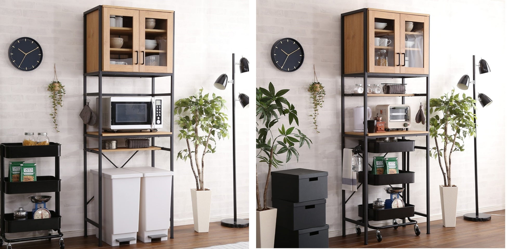 カラーはウォールナット、ナチュラルの2色をご用意 ※ごみ箱、スチールワゴン等は別売りです。