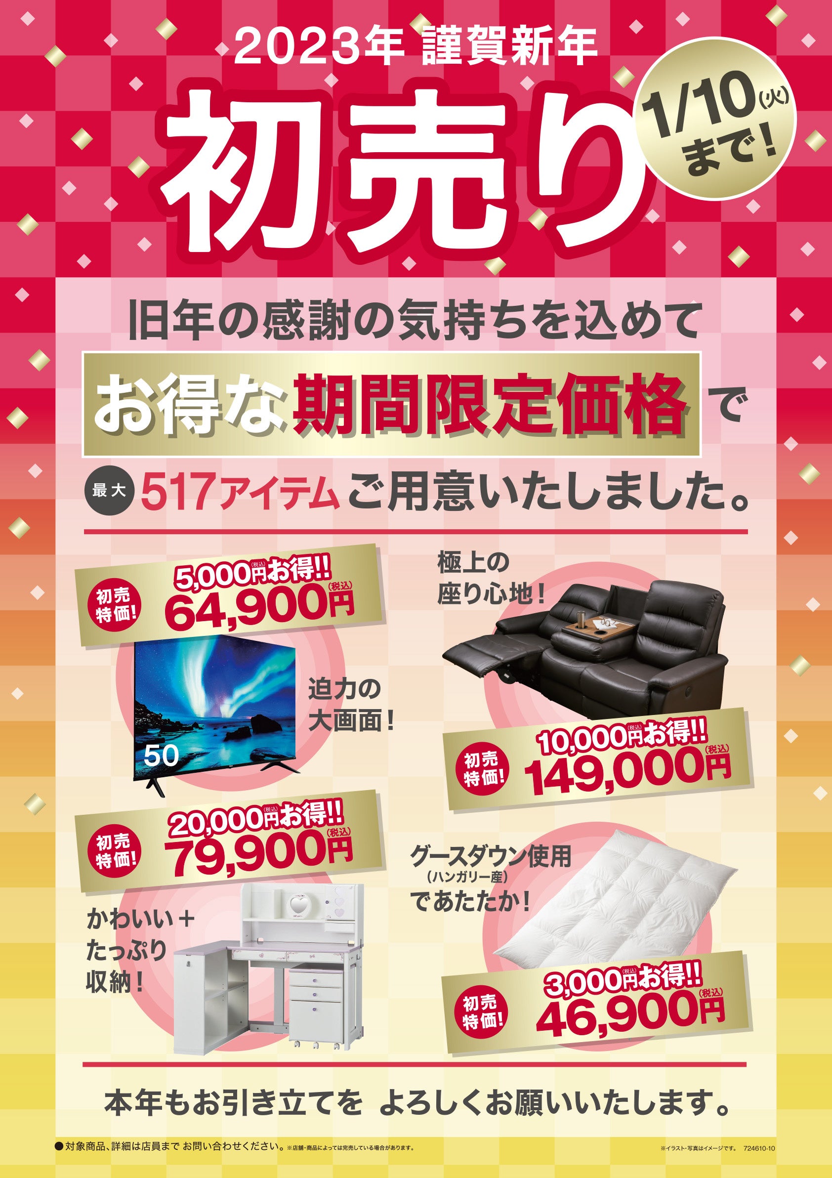 - 1月1日(日)から10日間限定で、ニトリの「初売り」も同時開催!