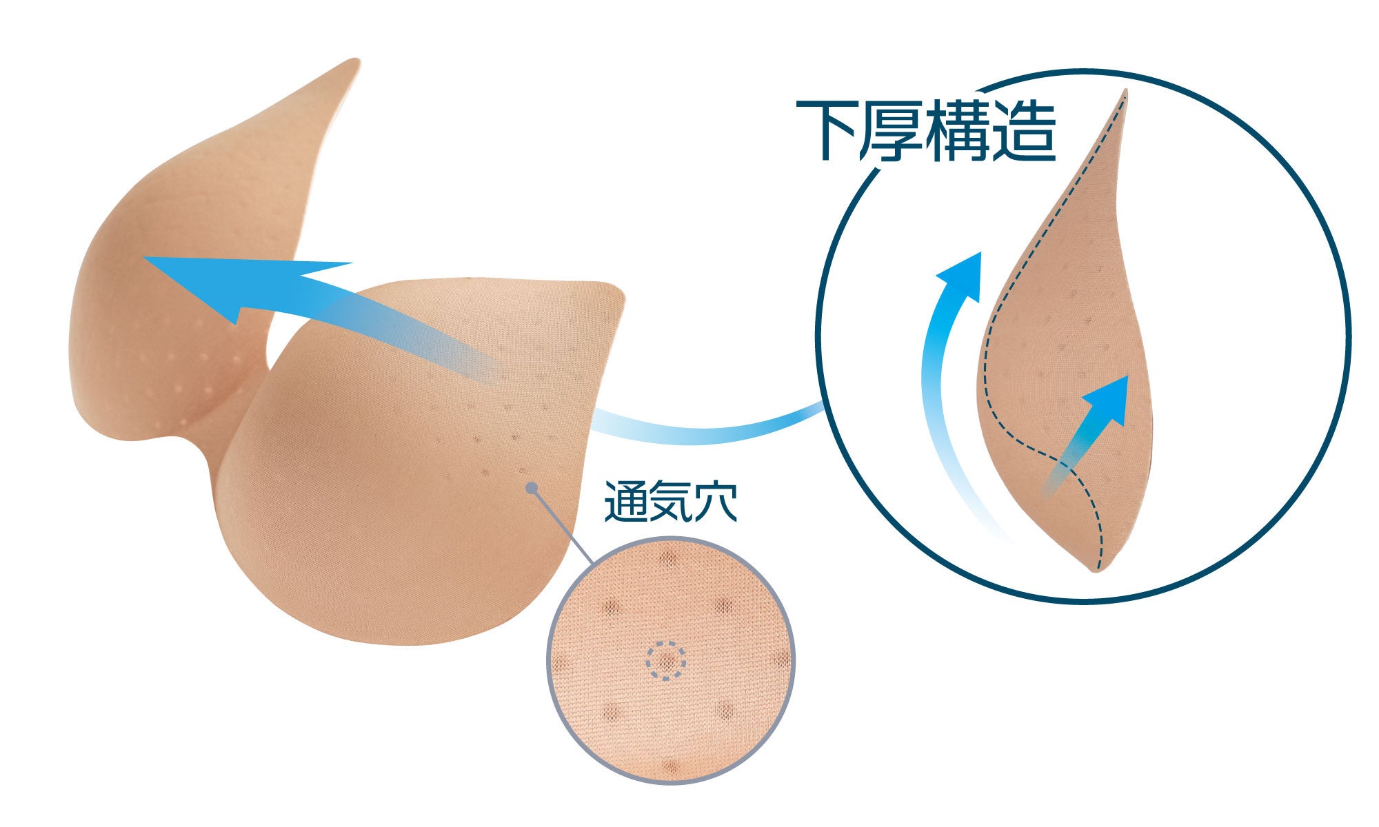 パッドは全面エアーボール構造で、風通しが良く、左右一体型なので胸の形をキレイに見せてくれます。