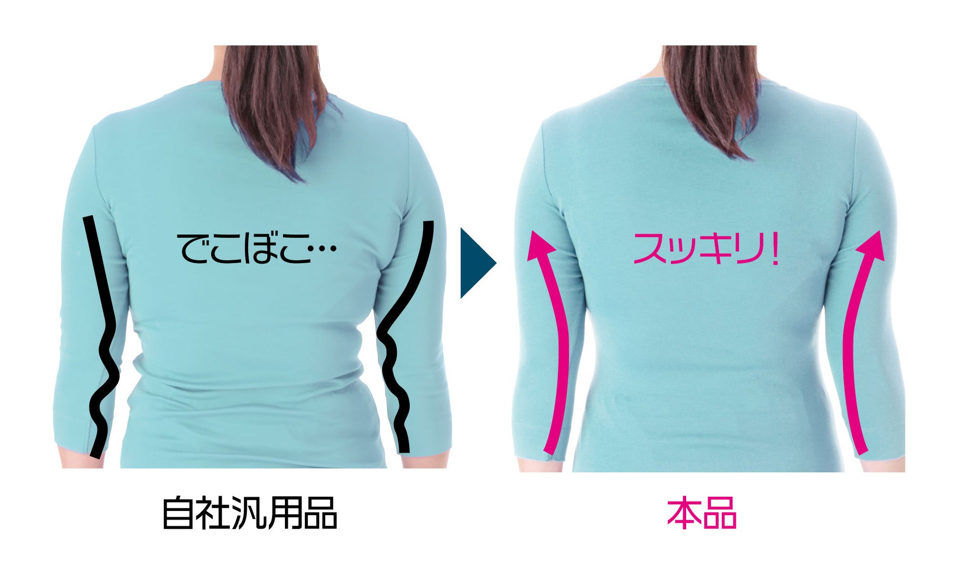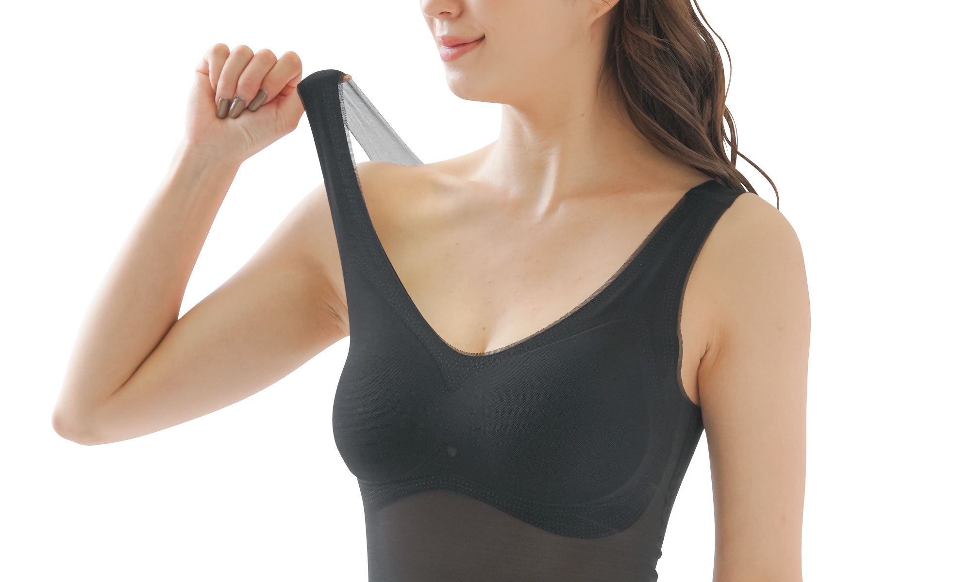 脇高設計でワキ肉・ハミ肉・背肉をしっかりとキャッチし、スッキリなめらかなシルエットに!