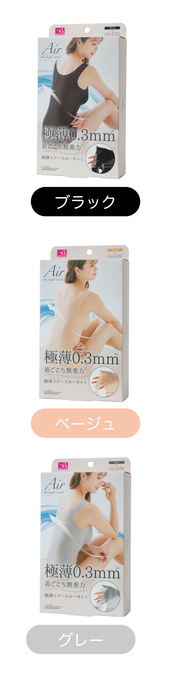 株式会社ニーズ/株式会社サンファミリー(本社:兵庫県加古川市、代表取締役:本岡勝則)は、「極薄エアースルーキャミ」2,178円(税込)を2⽉9⽇(金)より発売開始しました。